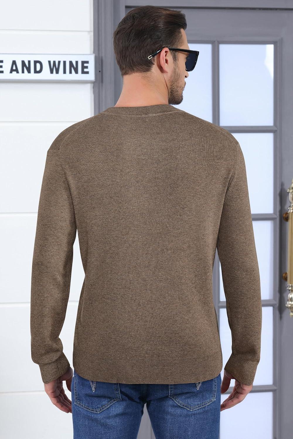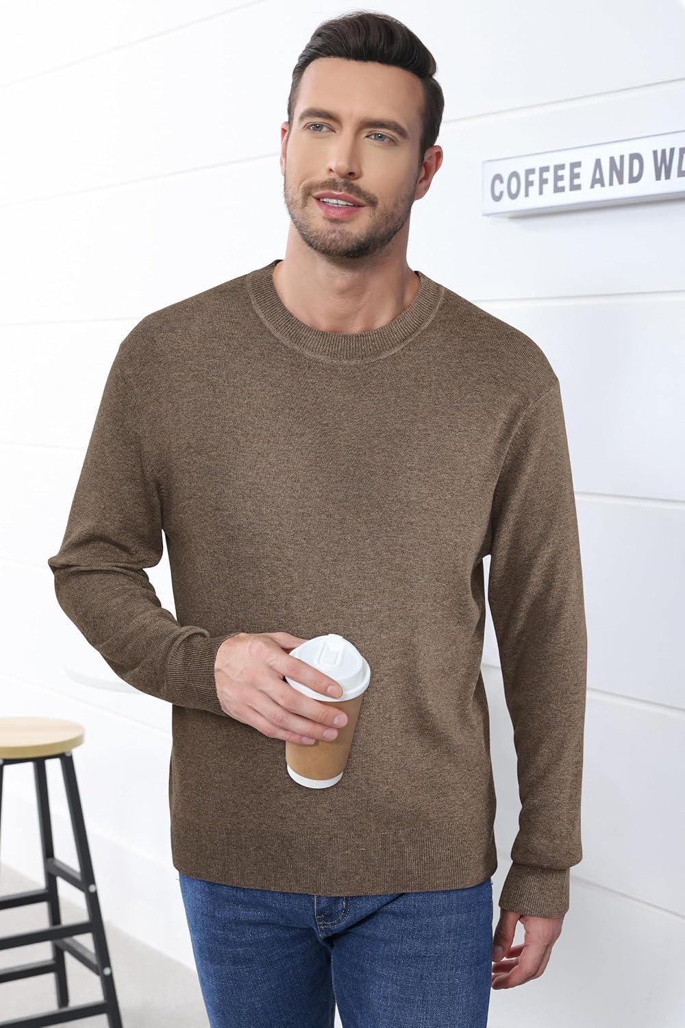 Arach&Cloz Mens Wool Blend Loose Fit Sweater Ultra Soft 2025 Spring Bottoming Crewneck Fashion Pullover(Coffee)