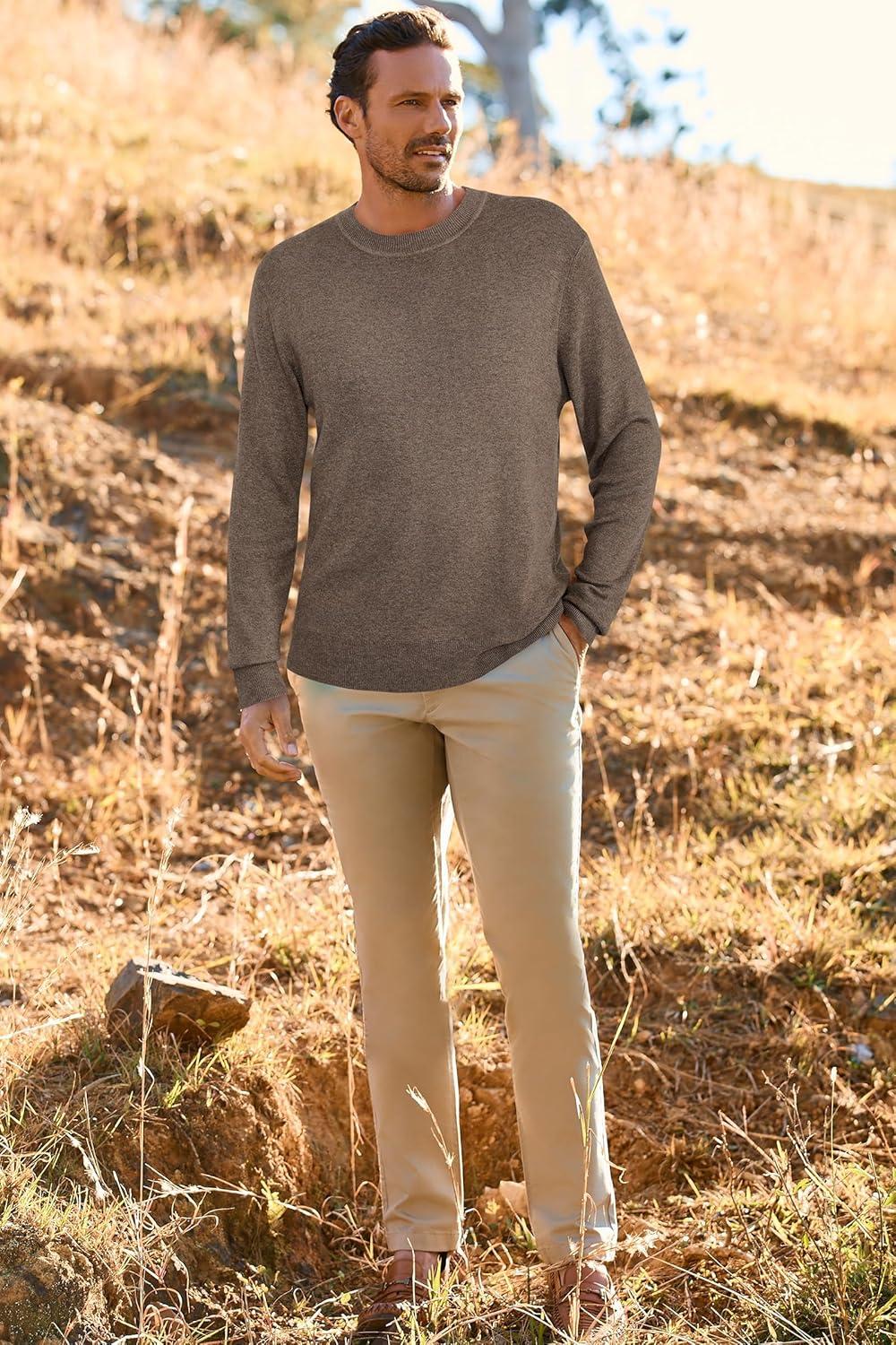 imageArachampampCloz Mens Wool Blend Loose Fit Sweater Ultra Soft 2025 Spring Bottoming Crewneck Fashion PulloverLcoffee