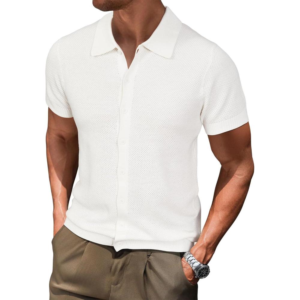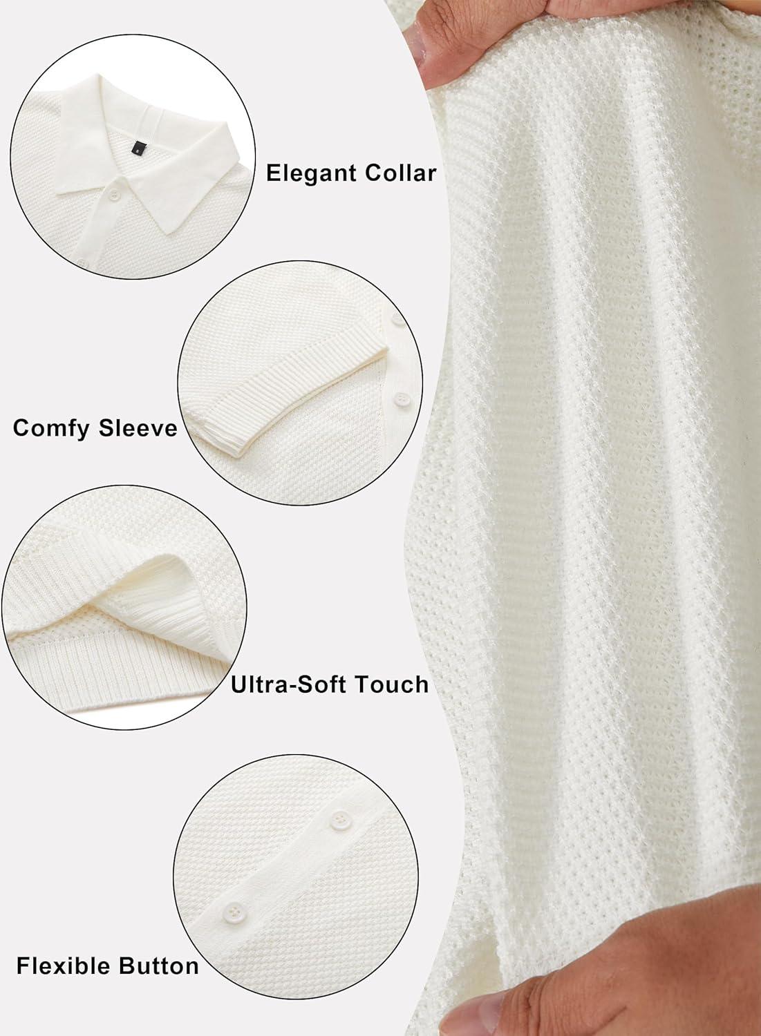 Arach&Cloz Mens Wool Blended Button Down Shirt Short Sleeve Knit 2025 Summer Fashion Dress Shirts Casual Business Golf(White)