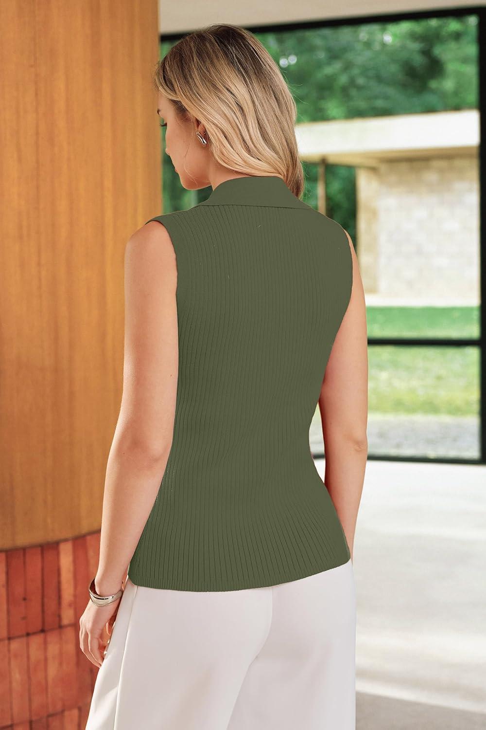 Arach&Cloz Women’s 100% Cotton Button Down Summer Business Casual Slim Fitted Tank Tops 2026(Army Green)