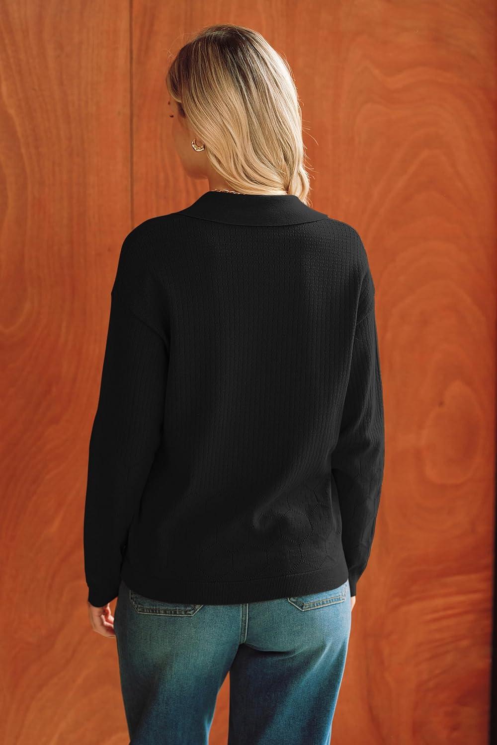 Arach&Cloz Women's 100% Cotton Collared V Neck Eyelet Knit Spring Cotton Polo Shirts 2026(Black)