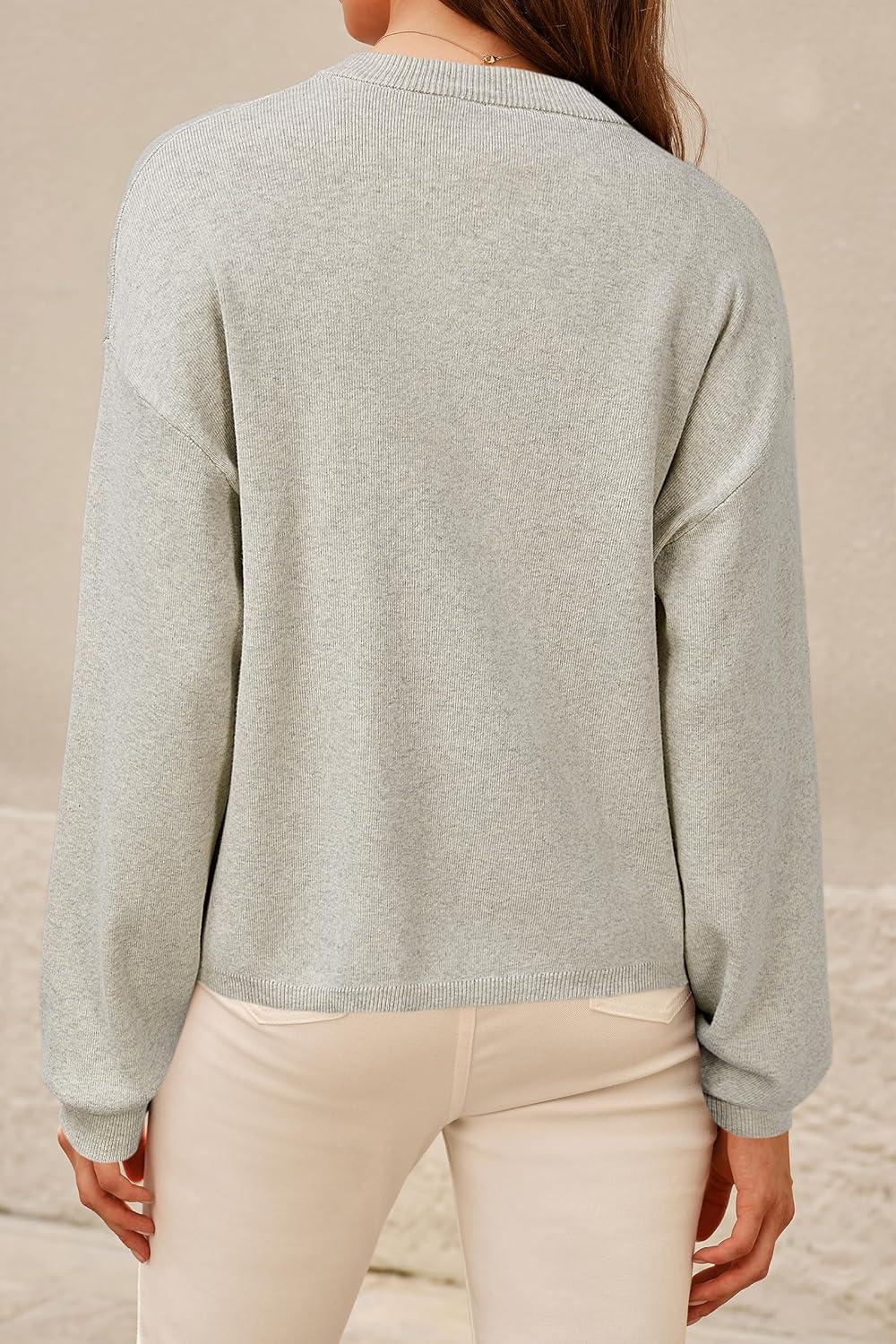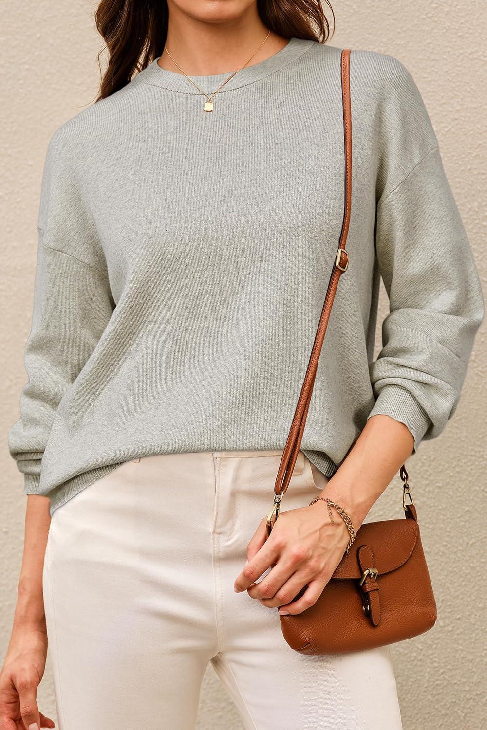 Arach&Cloz Women’s 100% Cotton Crew Neck Fall Casual Relaxed Fit Sweater Tops 2025(Beige Grey Heather)
