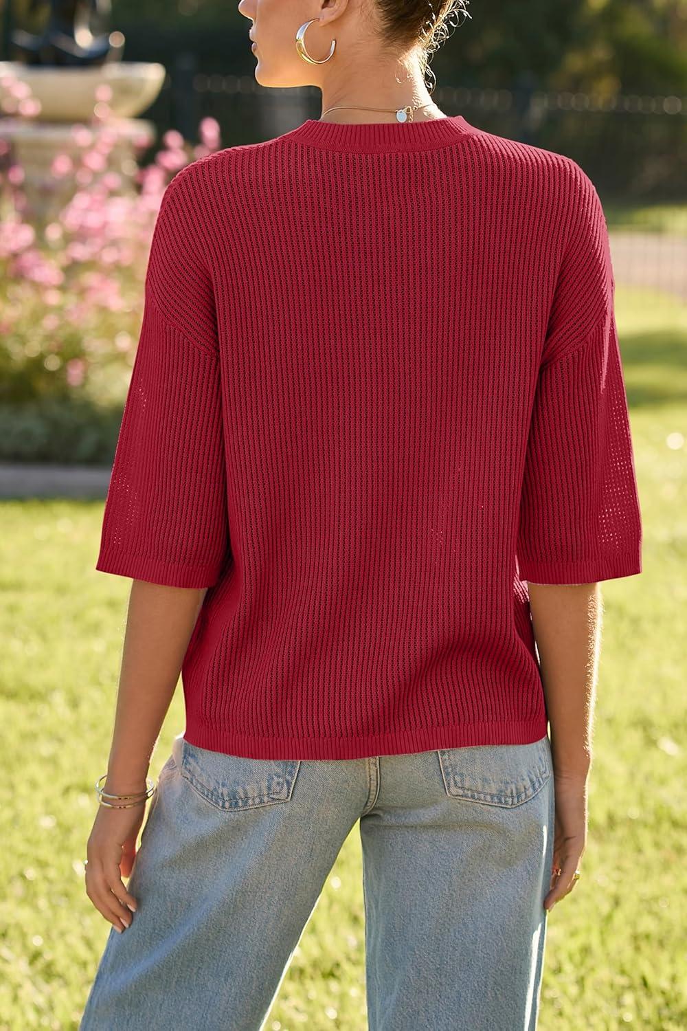Save big on Arach&Cloz Women’s 100% Cotton Fall Casual Relaxed Fit Crochet Tops 2025(Red) during our summer blowout sale. Limited quantities available.
