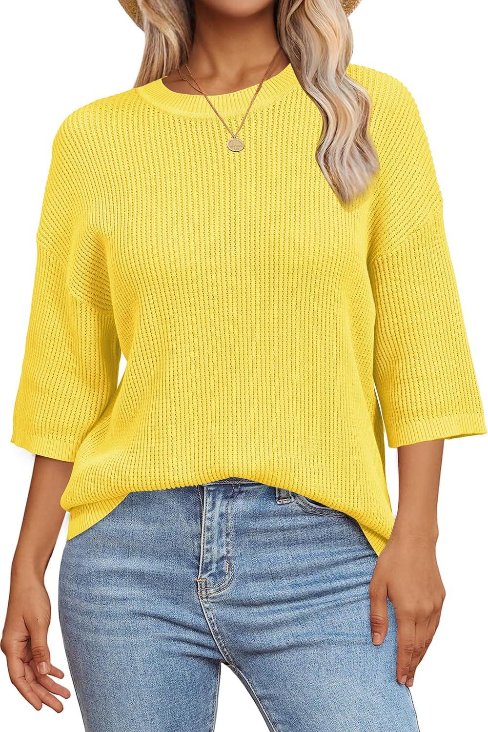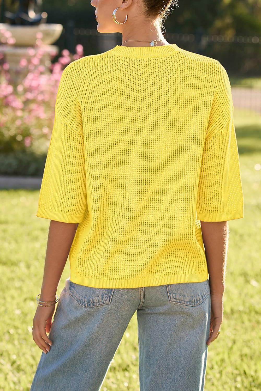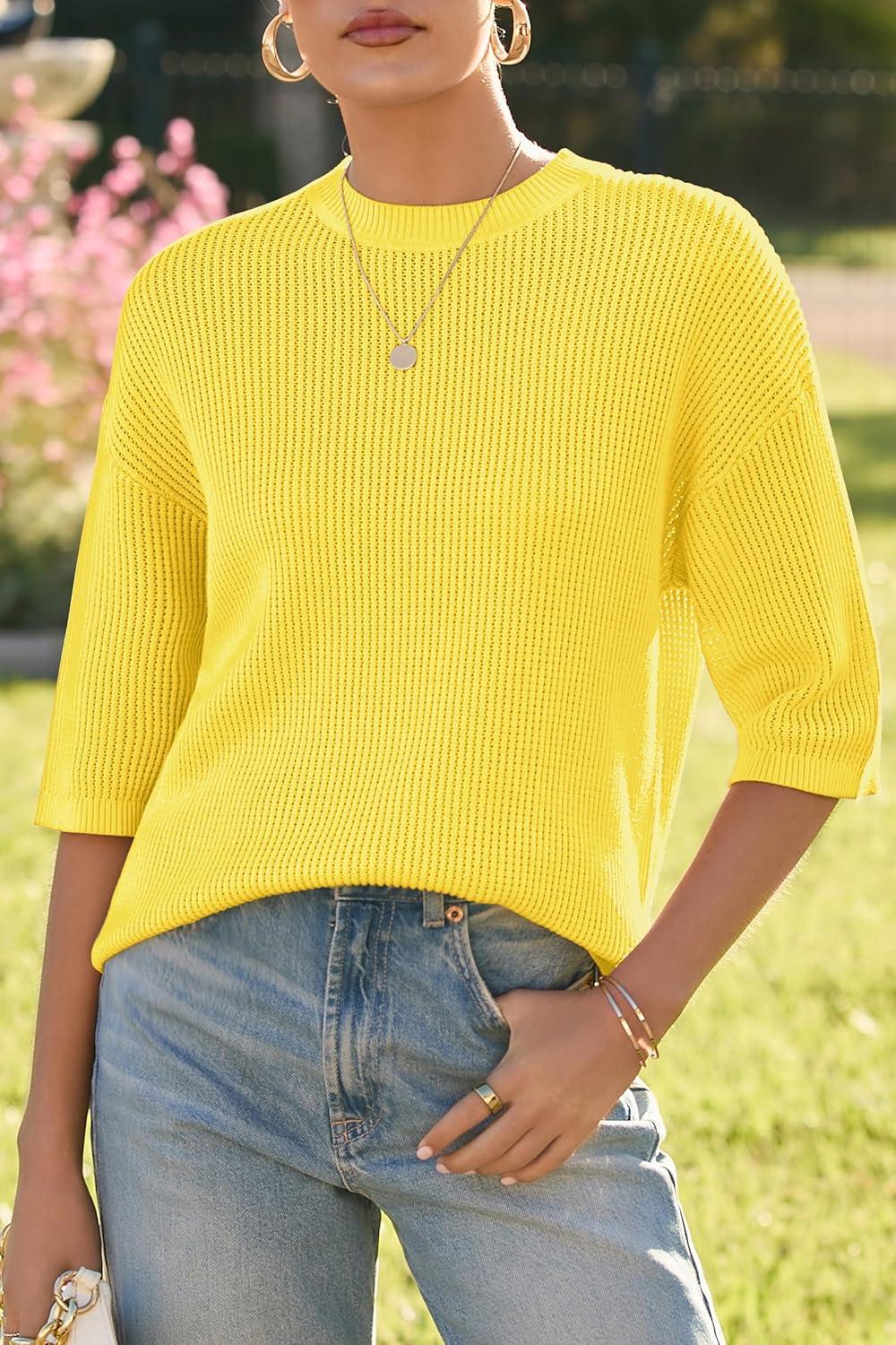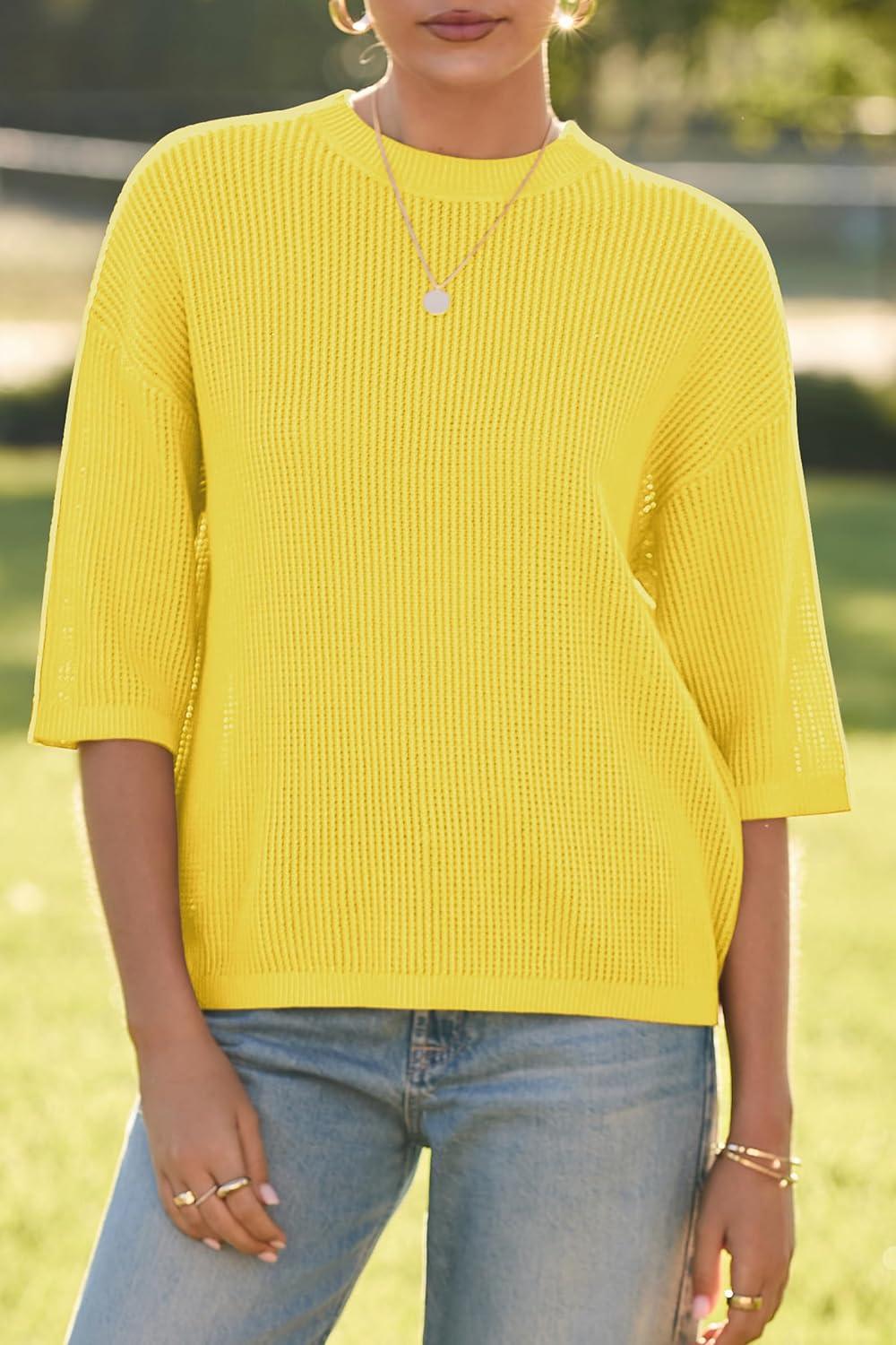 Arach&Cloz Women’s 100% Cotton Fall Casual Relaxed Fit Crochet Tops 2025(Yellow)