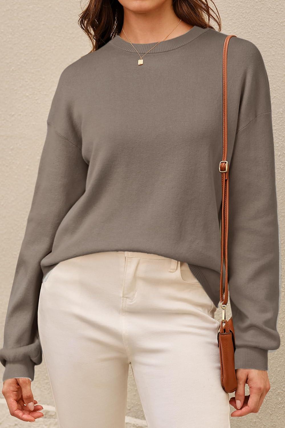 Arach&Cloz Women’s 100% Cotton Sweaters Spring Summer Casual Relaxed Fit Cozy Sweatshirt Tops 2026(Dark Coffee)