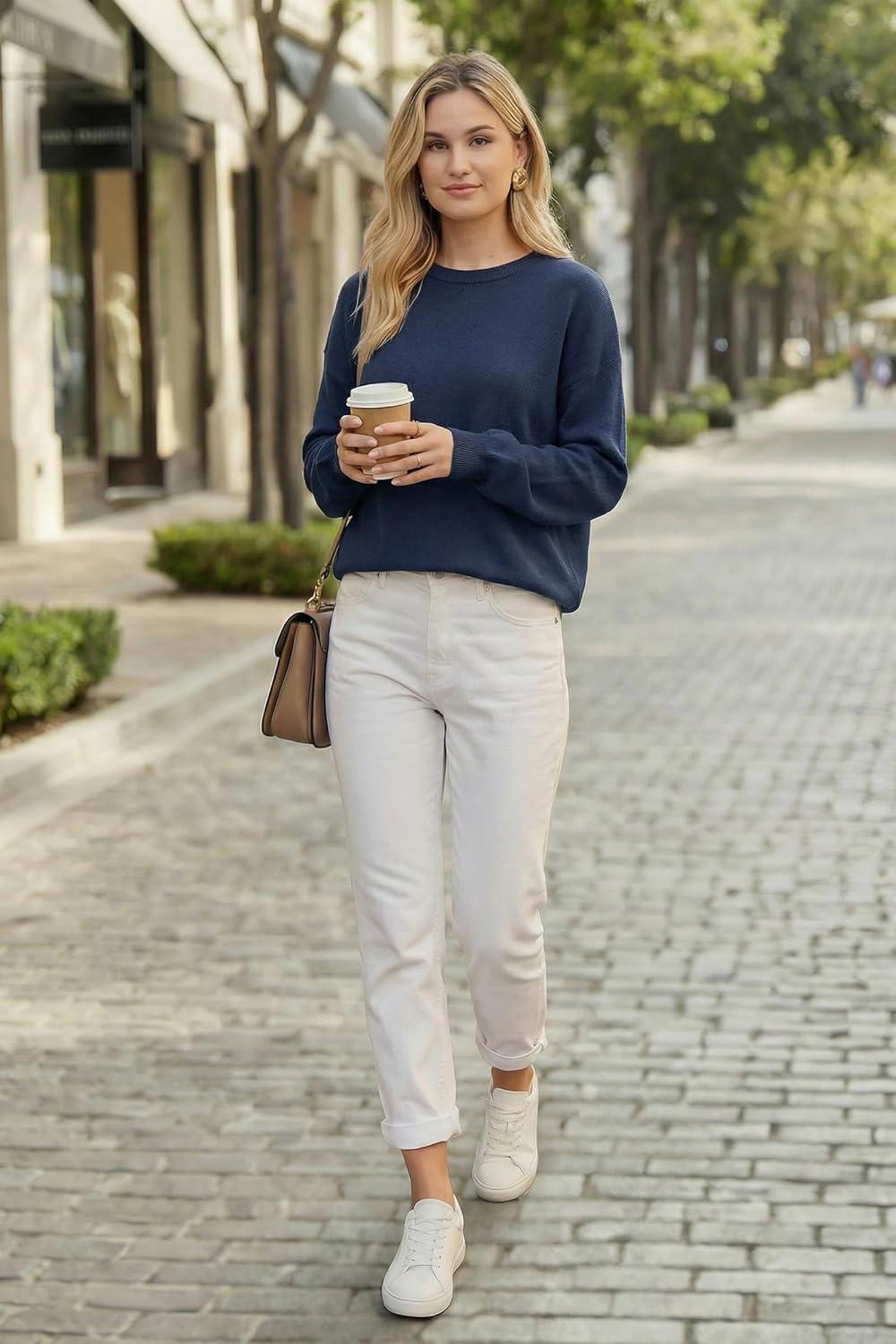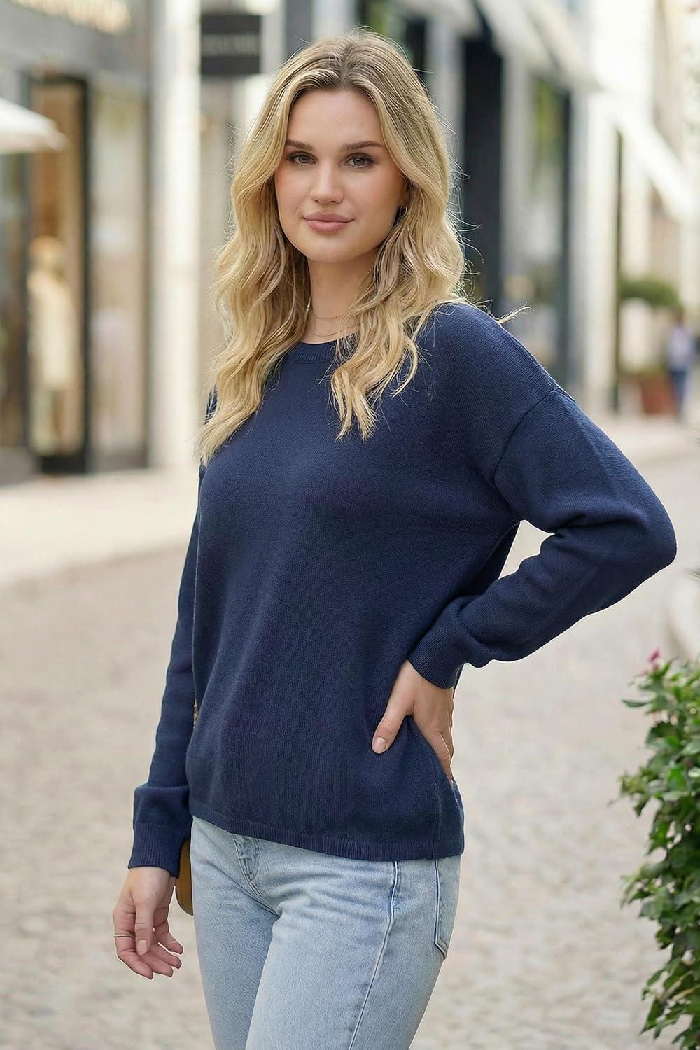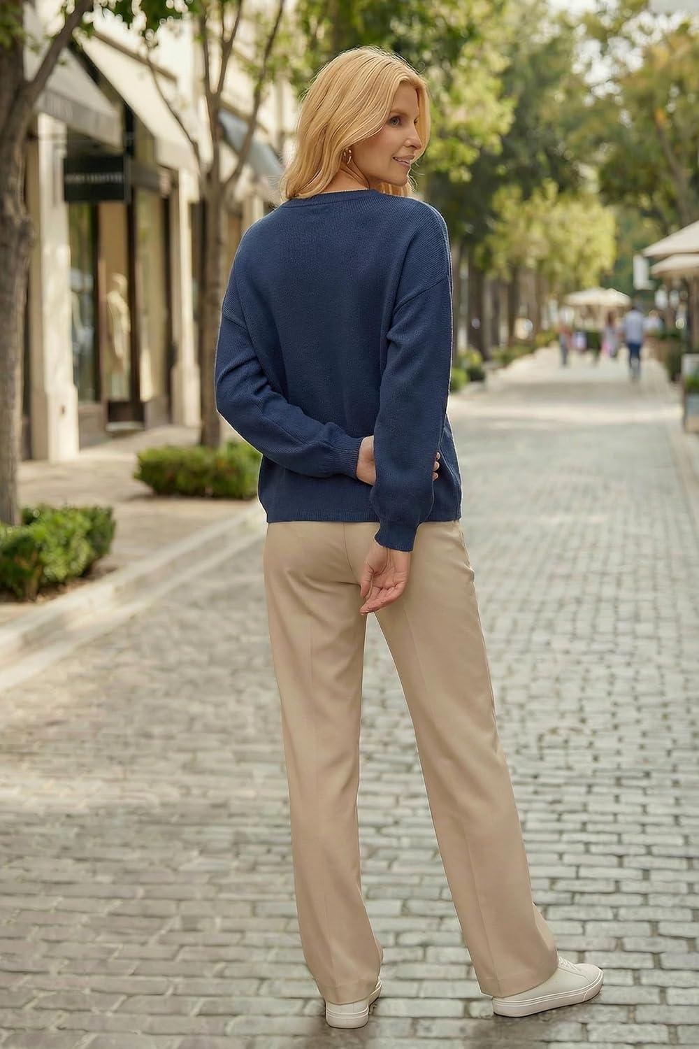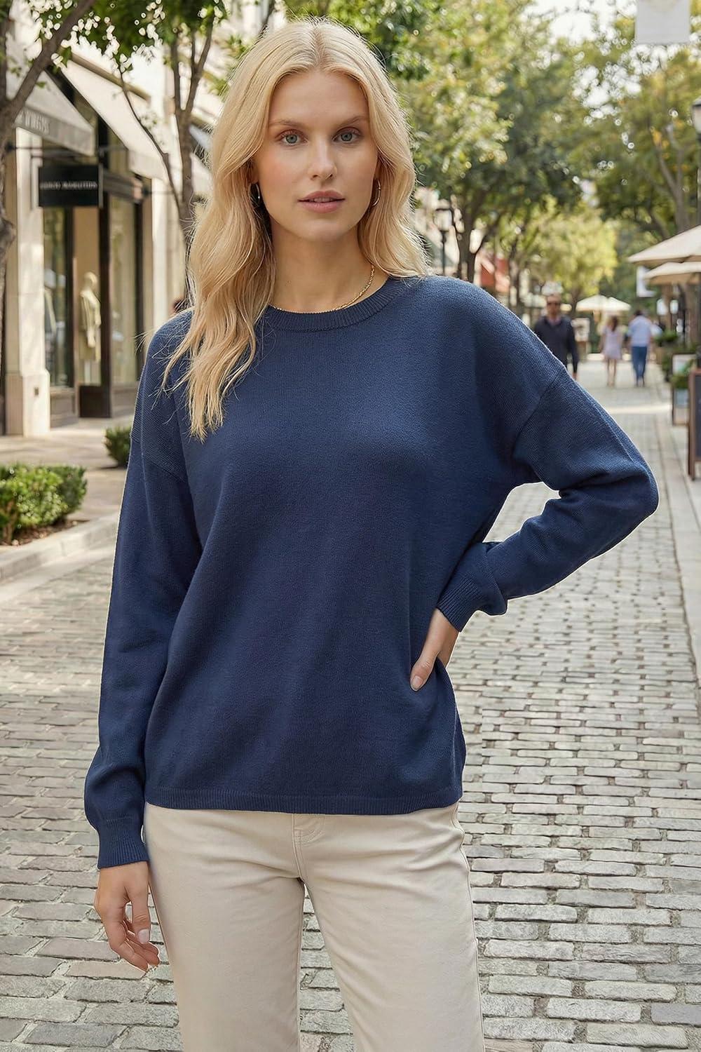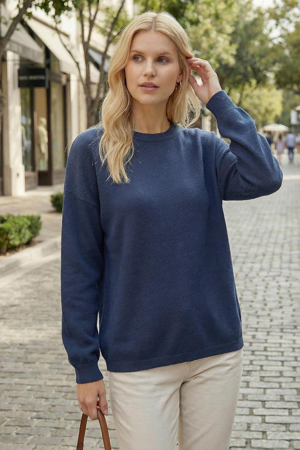 Arach&Cloz Women's 100% Cotton Sweaters Spring Summer Casual Relaxed Fit Cozy Sweatshirt Tops 2026(Navy)