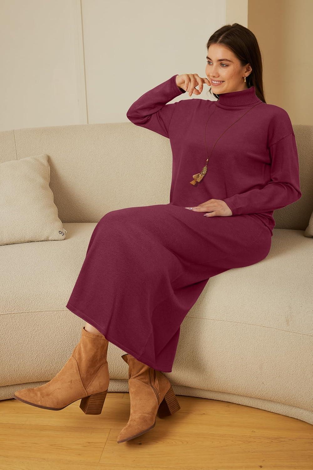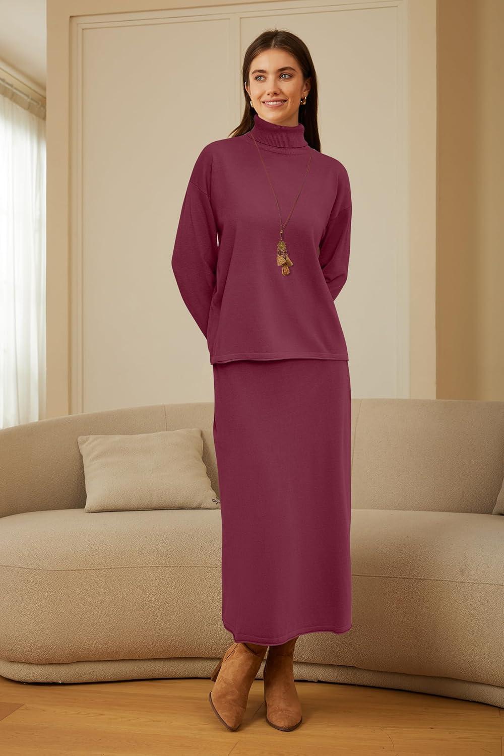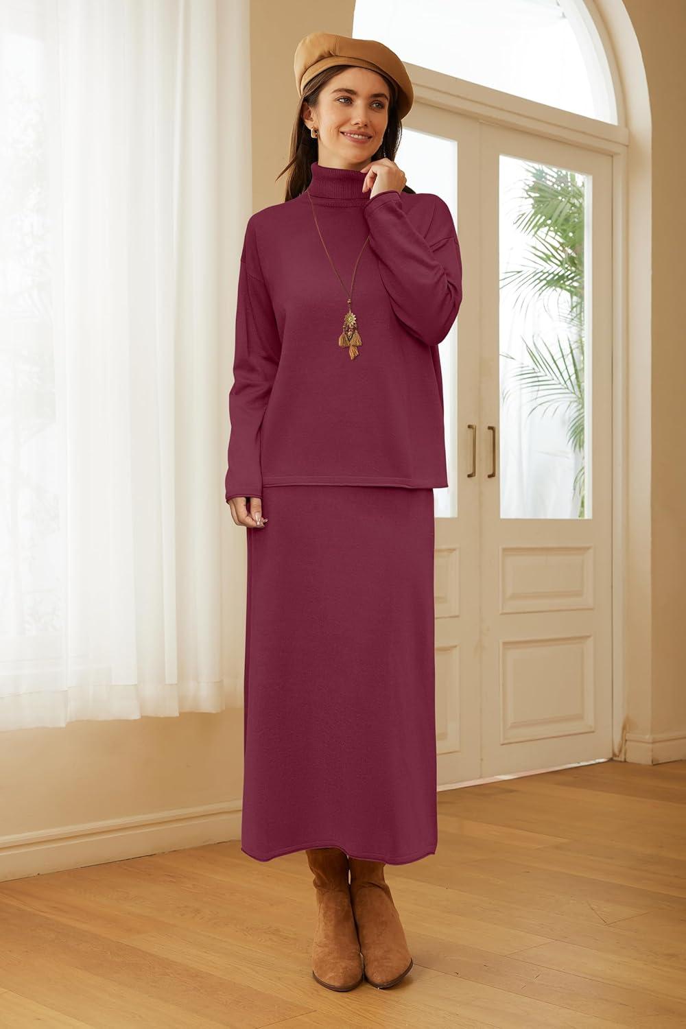 Arach&Cloz Womens 2 Piece Sweaters Sets Turtleneck Long Sleeve Tops Long Maxi Skirt Casual Fall Fashion 2024 Outfits(Wine)