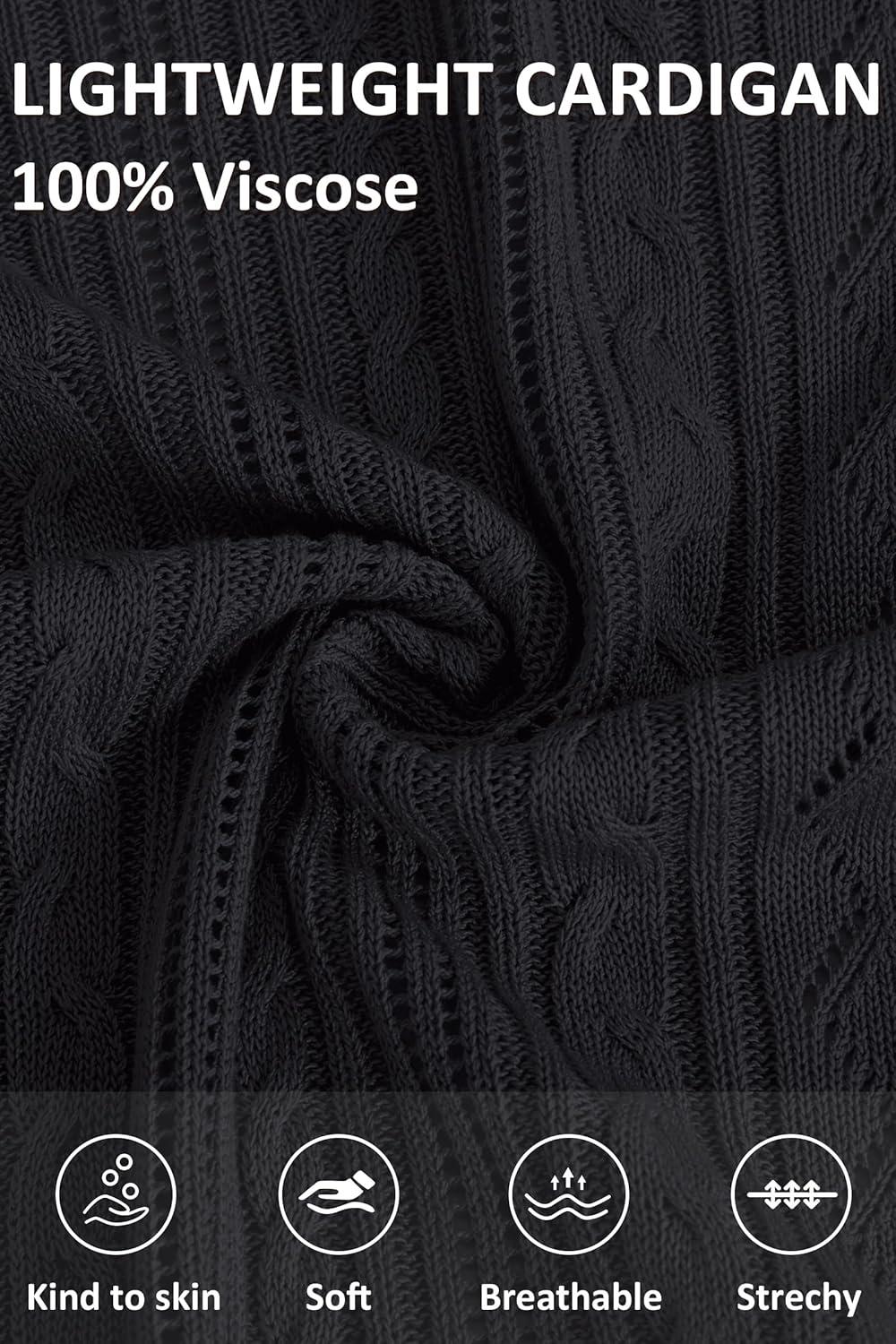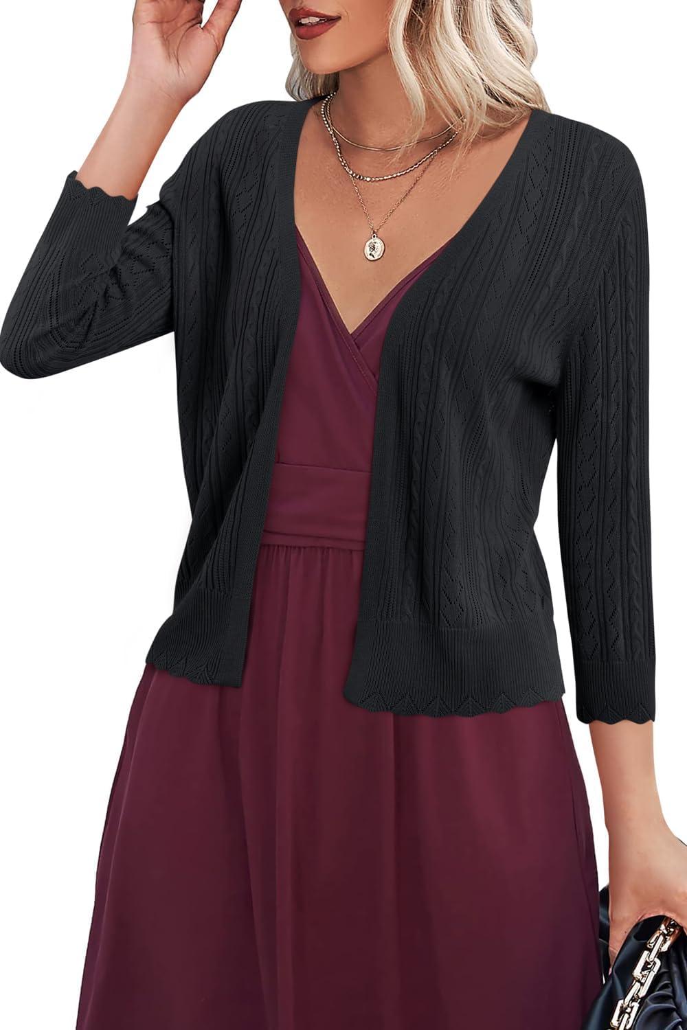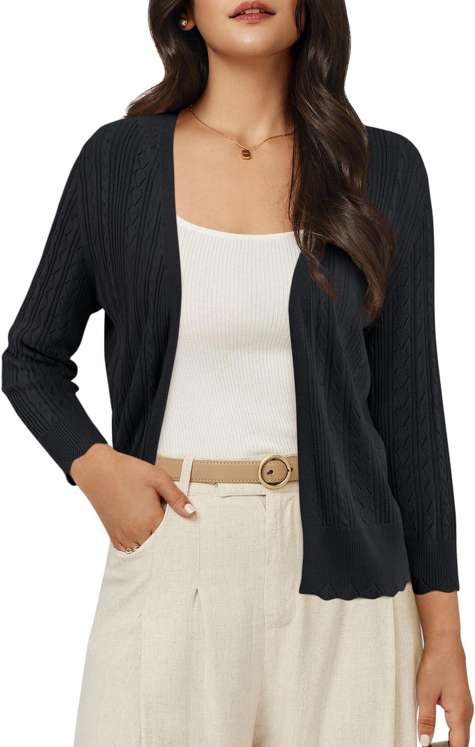 Arach&Cloz Women’s 2024 Lightweight Summer Cardigan 3/4 Sleeve Crochet Patterns Knit Shrug Sweater Tops(Black)