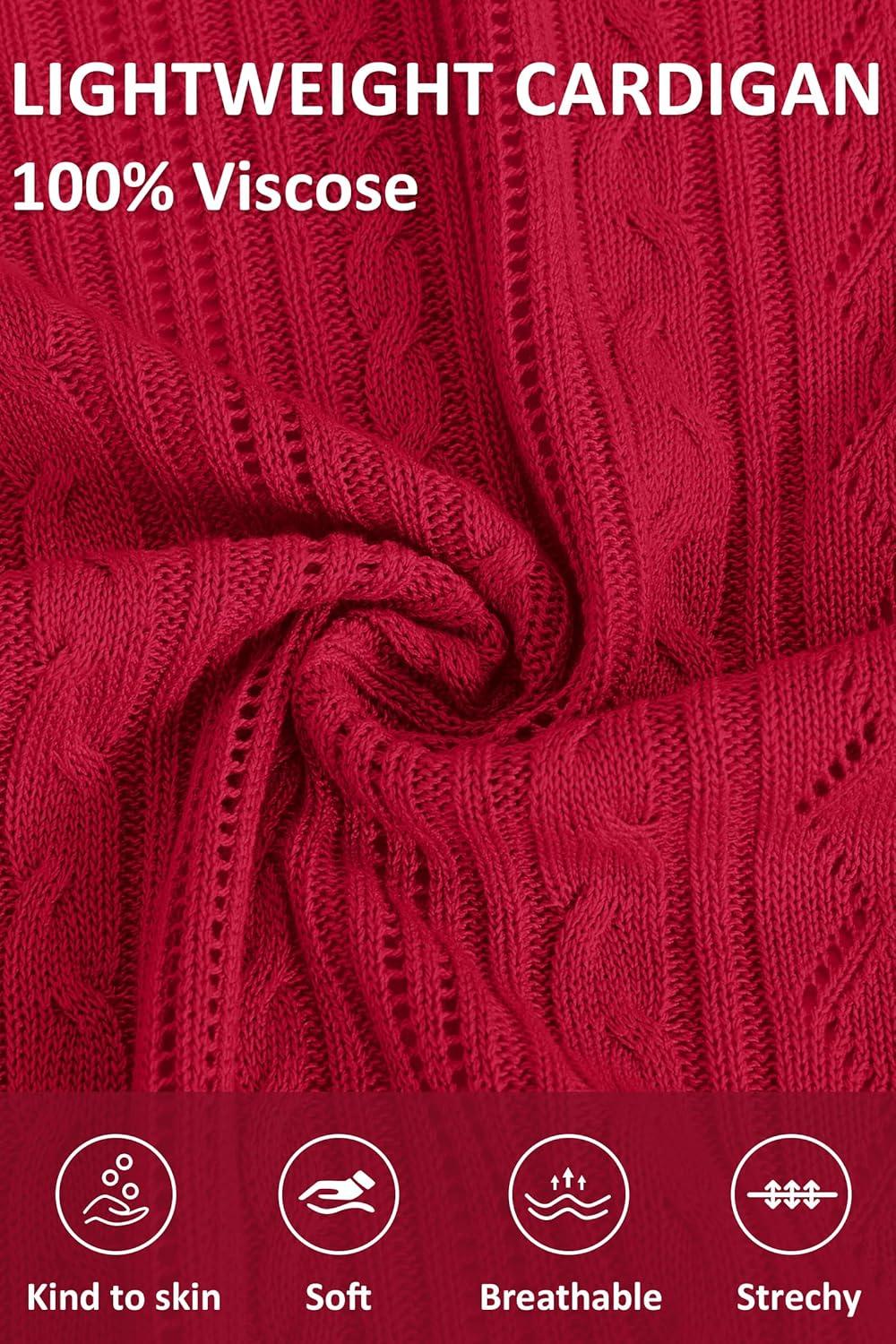 Arach&Cloz Women's 2024 Lightweight Summer Cardigan 3/4 Sleeve Crochet Patterns Knit Shrug Sweater Tops(Red)