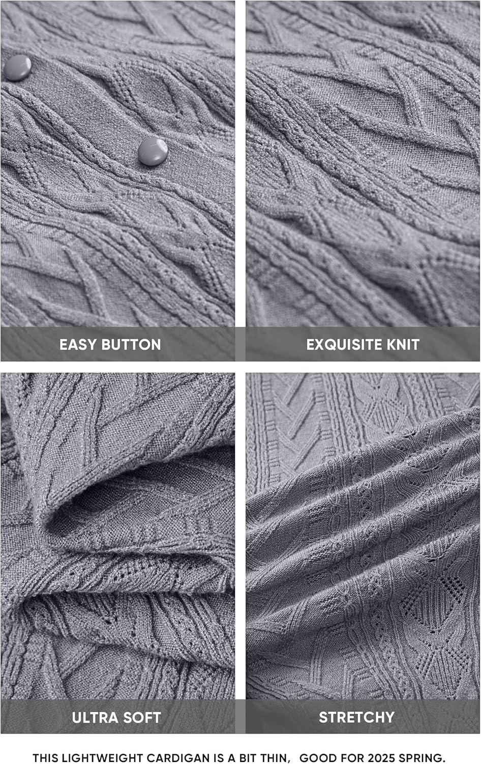 Arach&Cloz Women’s Cable Knit Fall Soft Lightweight Sweater Cardigans 2025(Grey Heather)