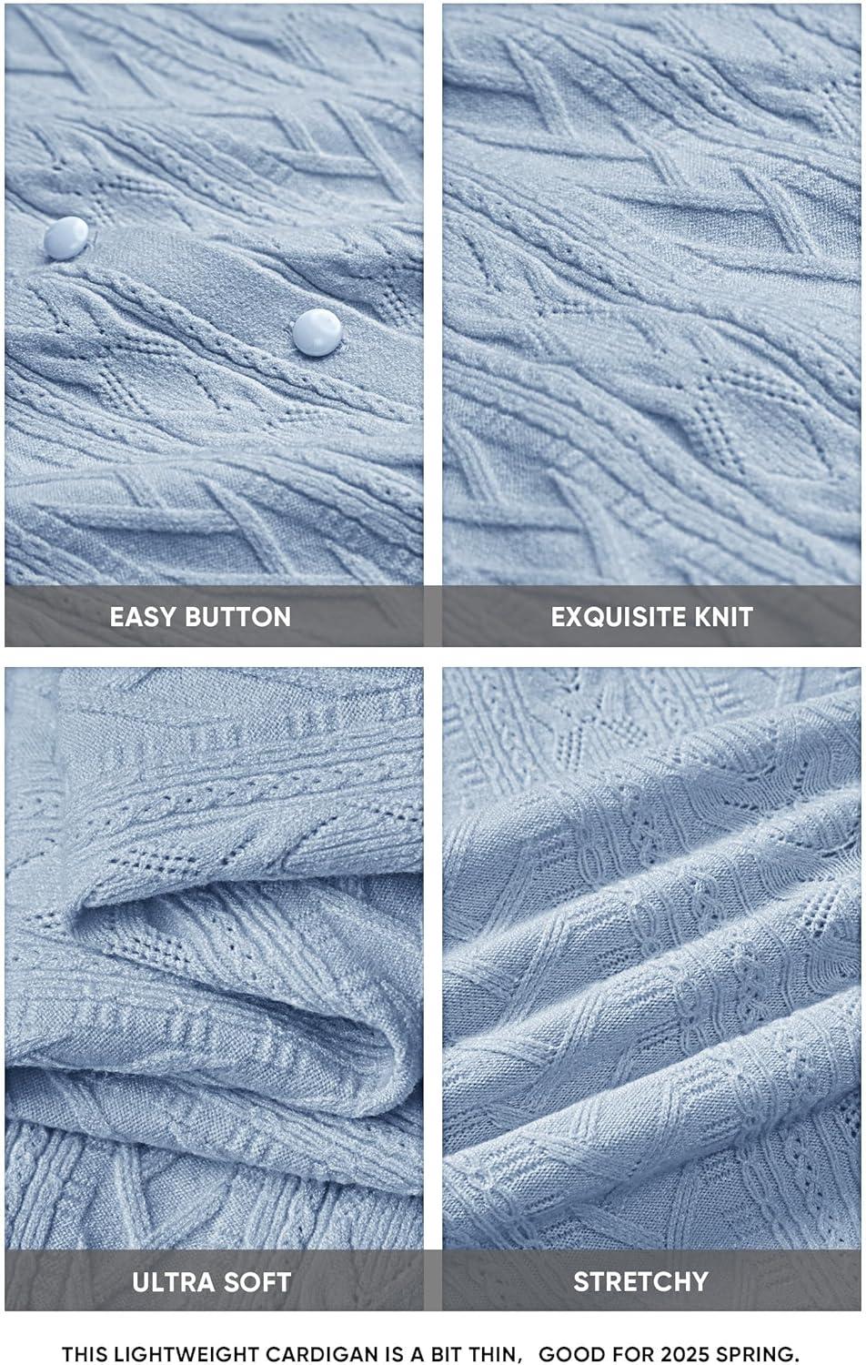 Arach&Cloz Women’s Cable Knit Fall Soft Lightweight Sweater Cardigans 2025(Sky Blue)