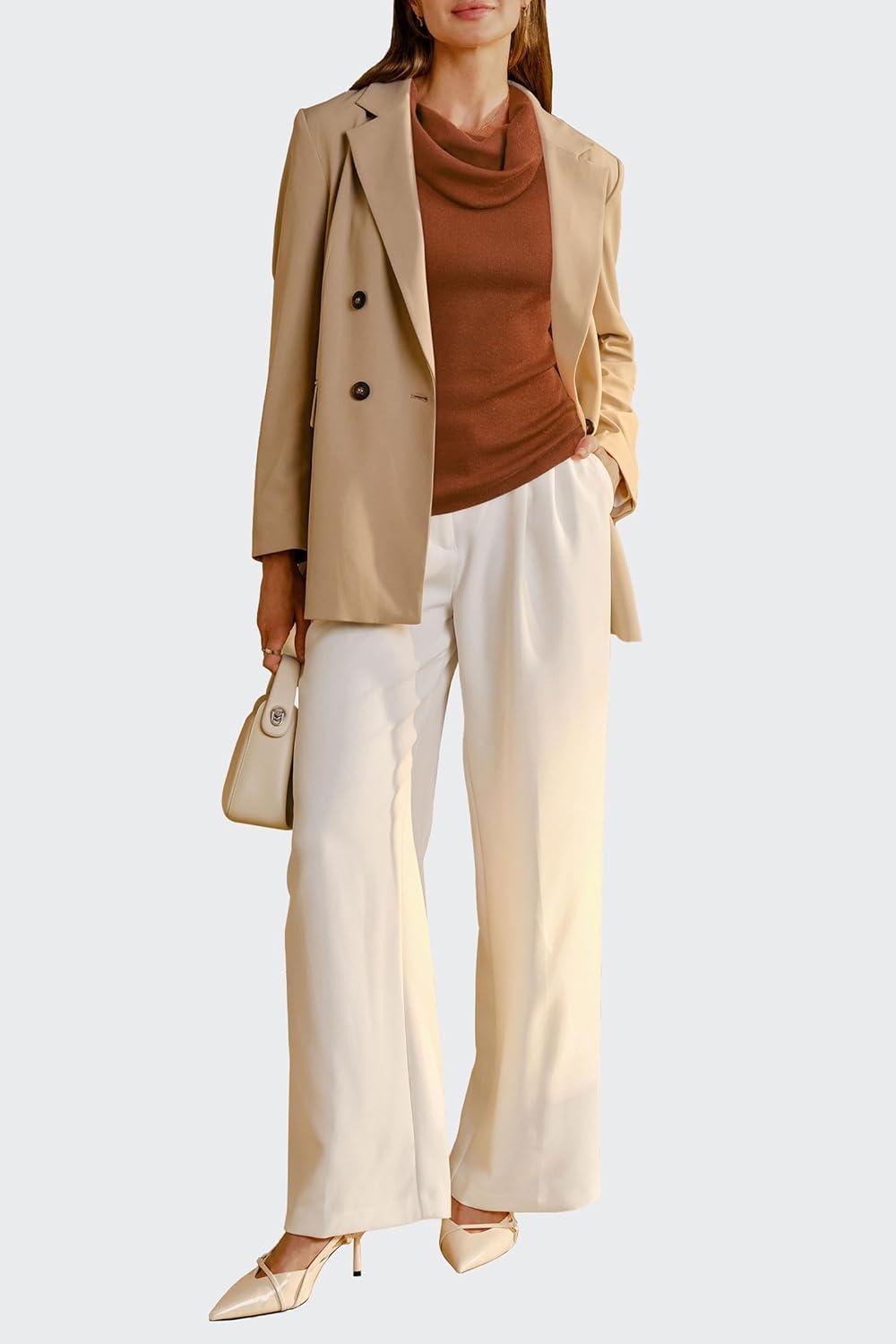 Arach&Cloz Women’s Convertible Neckline Off-Shoulder Cowl Neck Slim Fit Tops 2025(Camel)