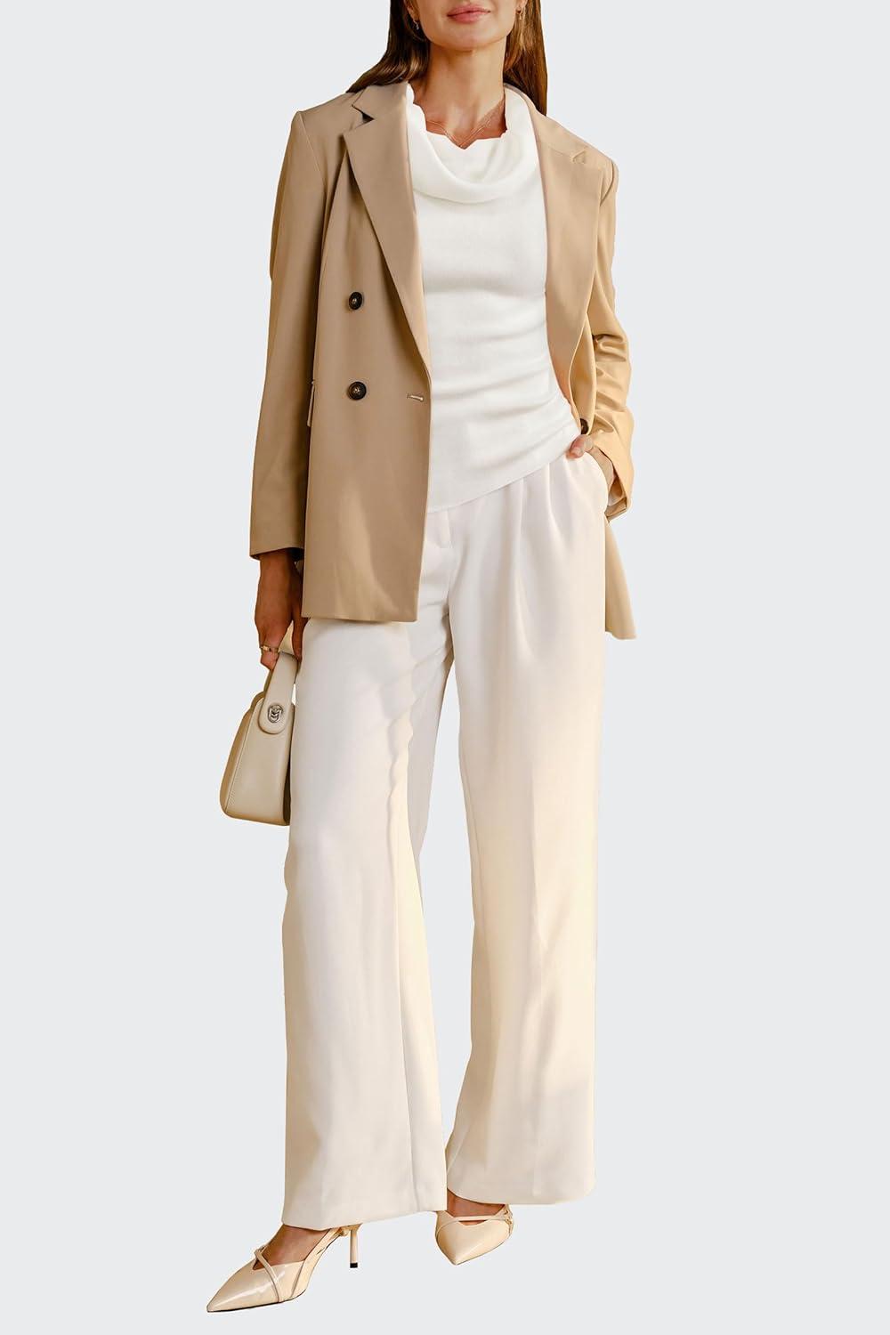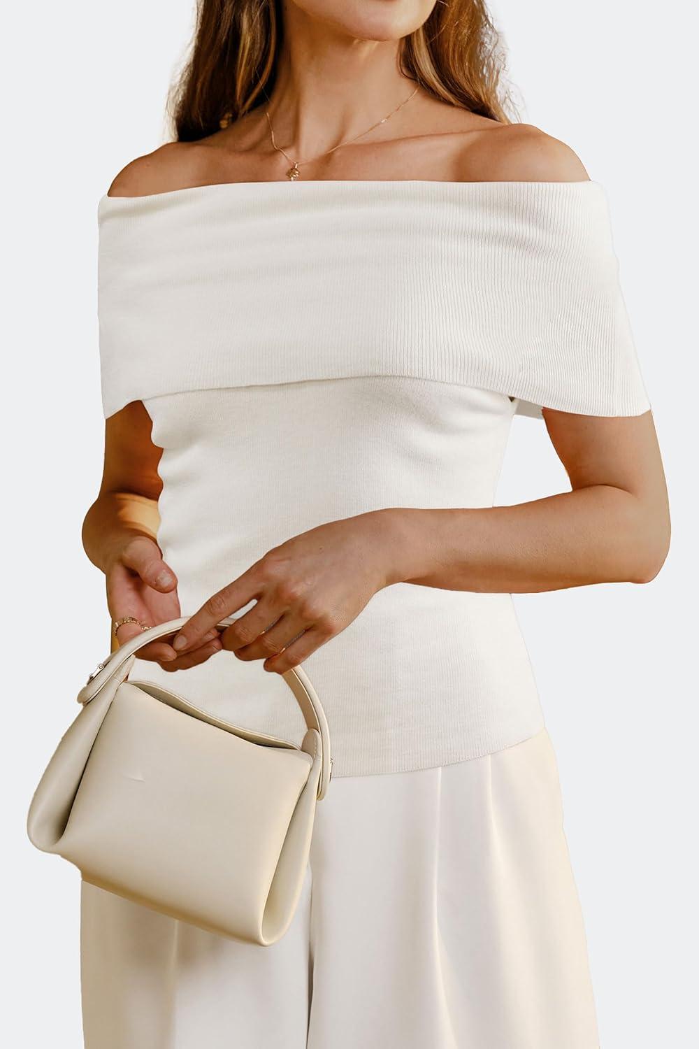 Arach&Cloz Women’s Convertible Neckline Off-Shoulder Cowl Neck Slim Fit Tops 2025(White)