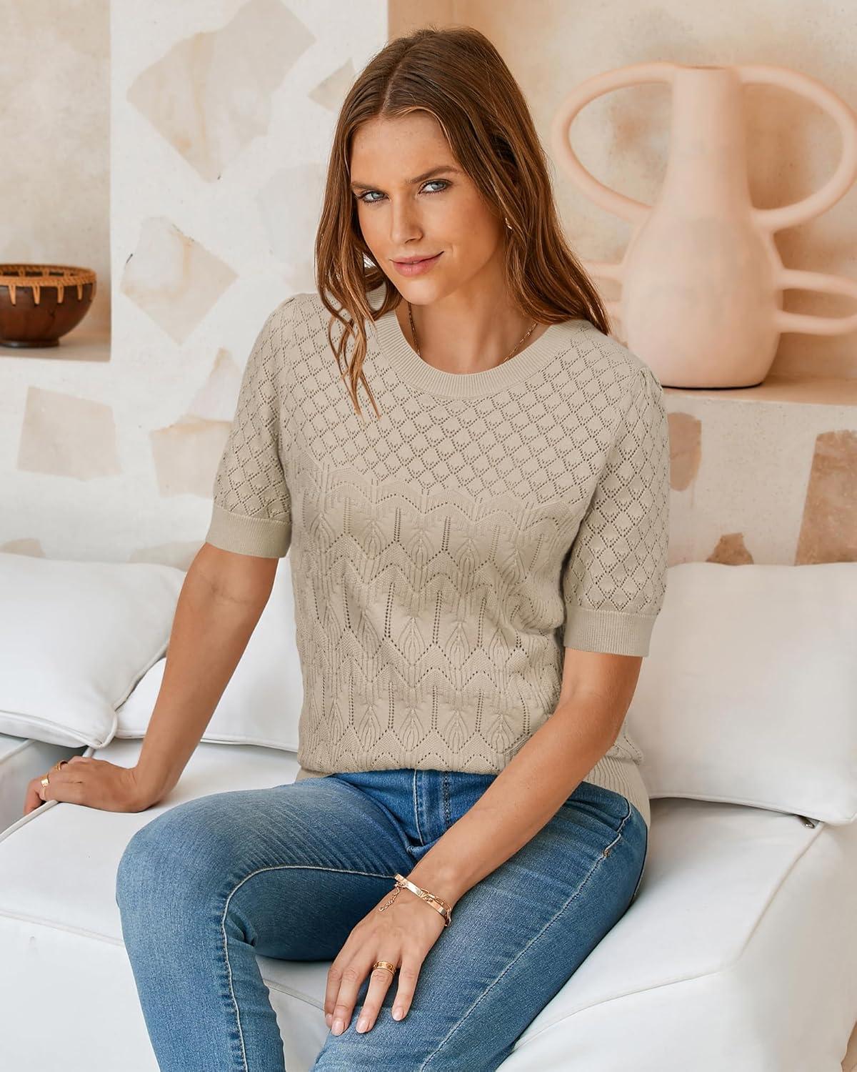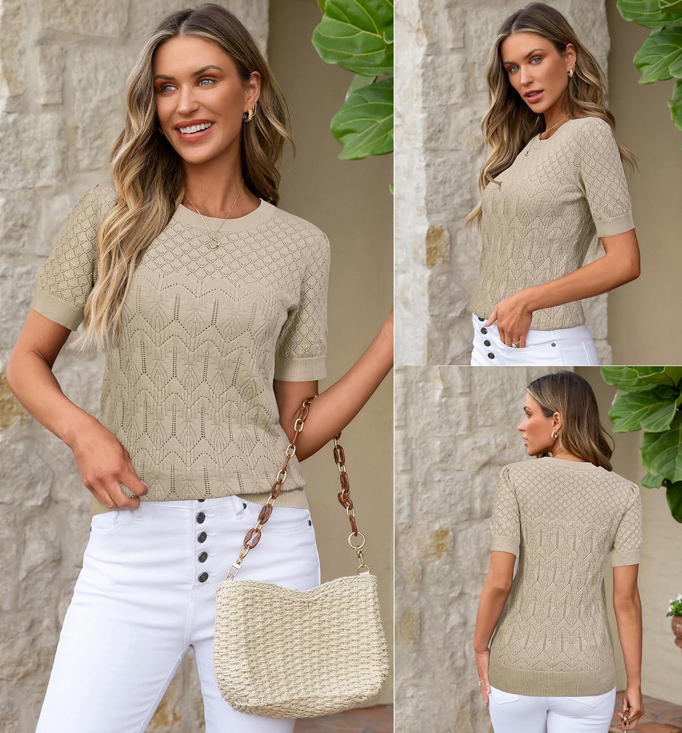 Arach&Cloz Women’s Cotton Blend Breathable Crochet Summer Tops 2025(Apricot)
