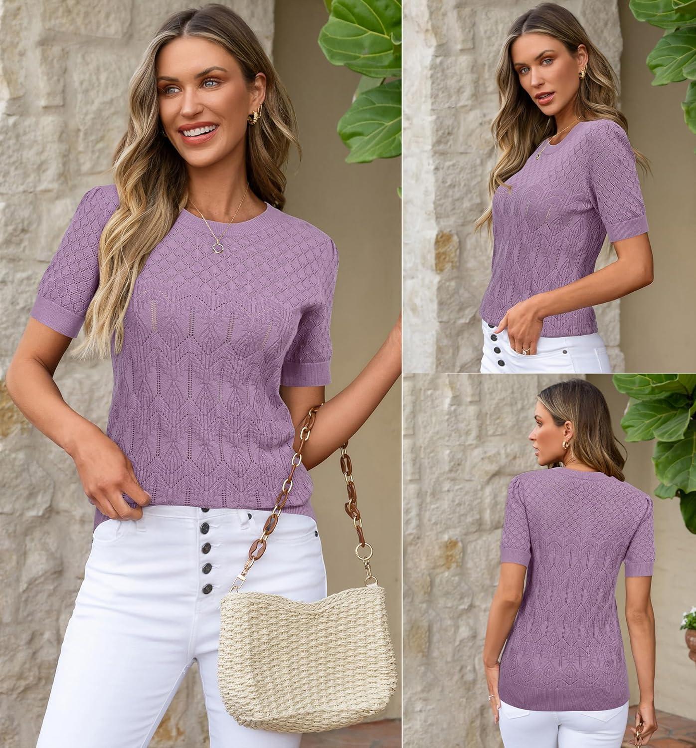 Arach&Cloz Women’s Cotton Blend Breathable Crochet Summer Tops 2025(Lilac Purple)