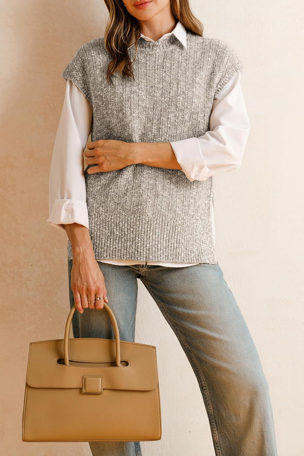 Arach&Cloz Women's Cotton Blend Cap Sleeve Side Slit Sweater Vest Fall Casual Tops 2025(Khaki Grey)