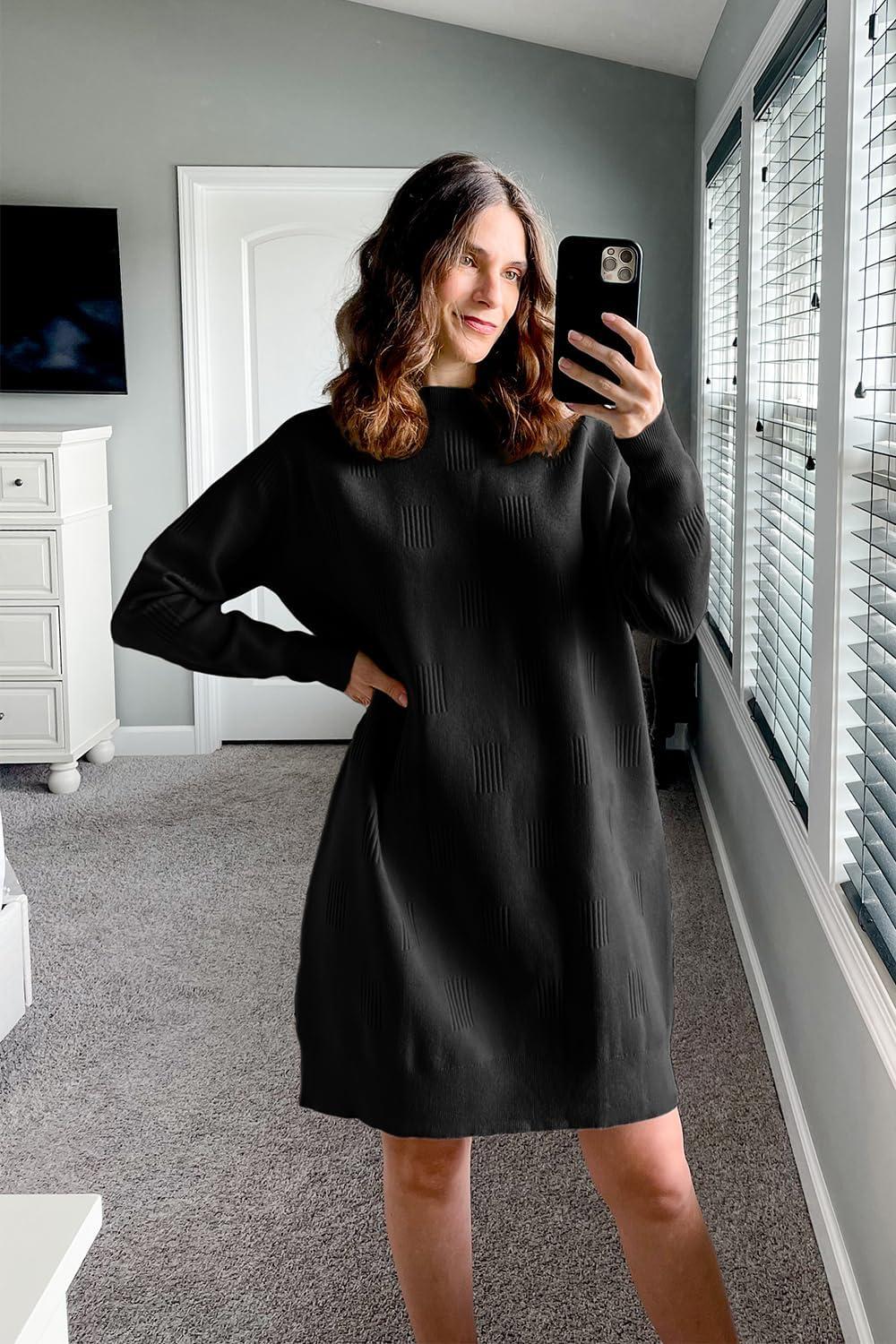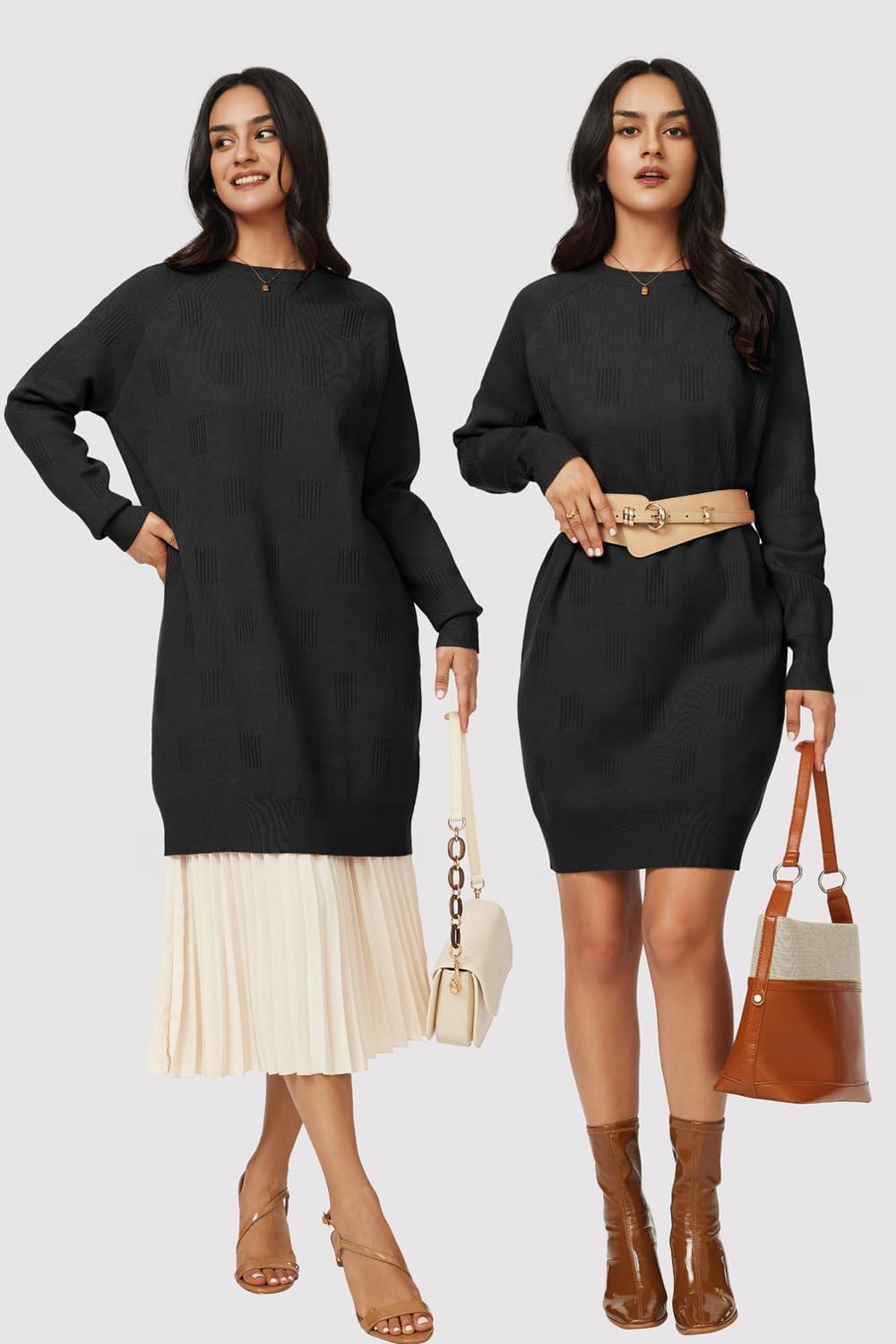 Arach&Cloz Womens Fall Fashion 2024 Sweater Dress Oversized Crew Neck Long Sleeve Knit Pullover Winter Clothes(Black)