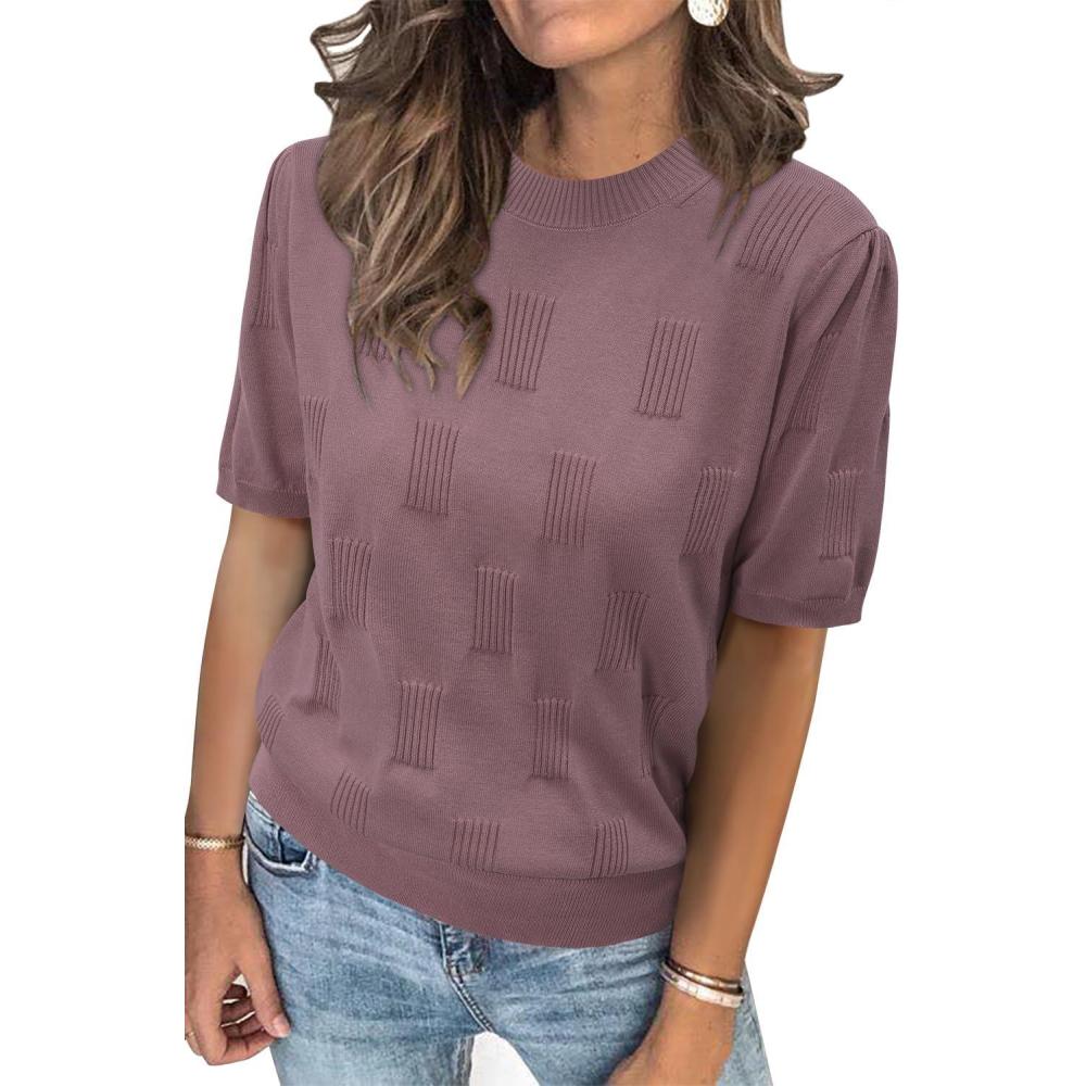 imageArachampCloz Womens Lightweight Blouse Short Sleeve Crew Neck Sweaters Business Dressy Casual Outfits Spring Summer Tops 2026Dusty Rose