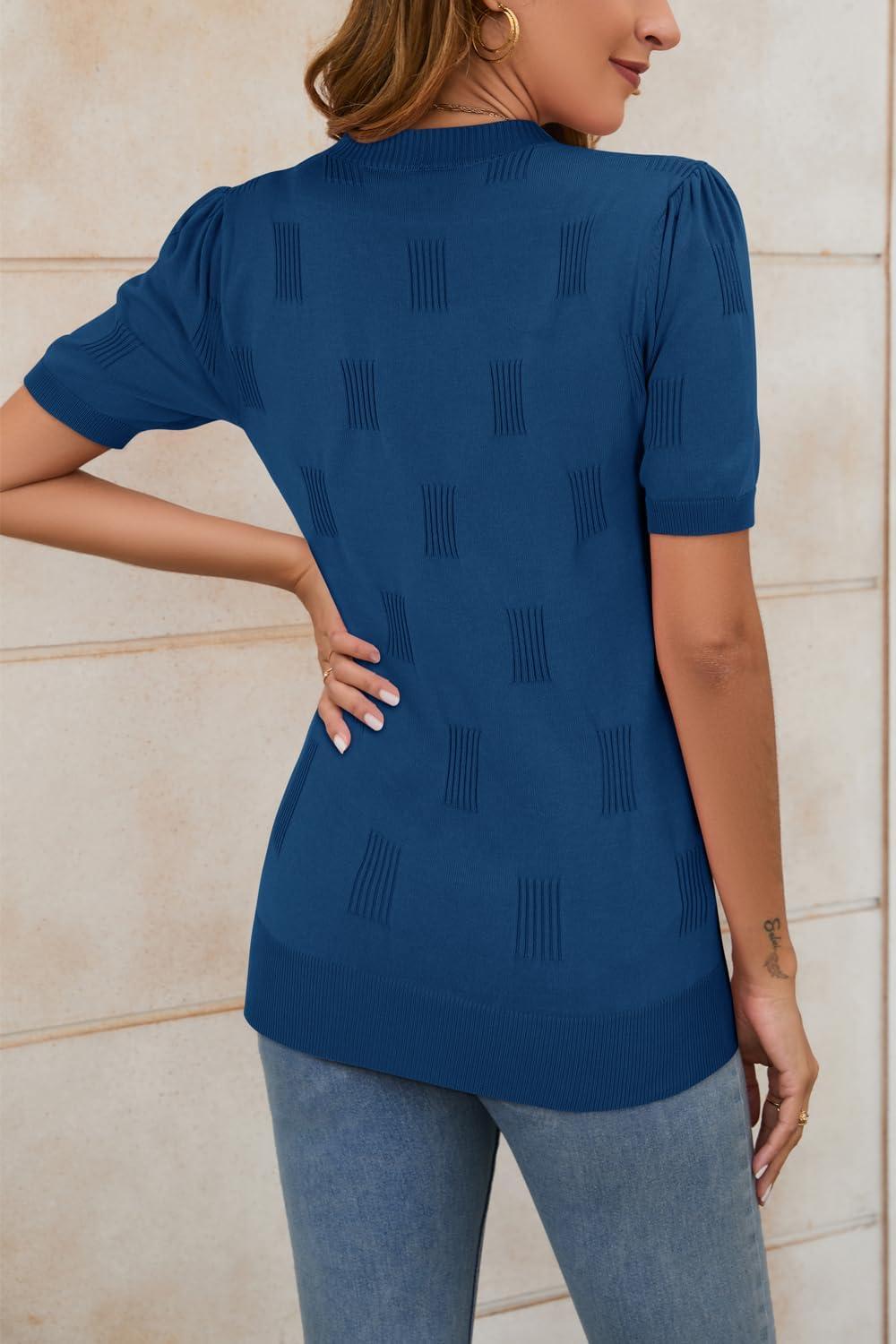 Arach&Cloz Women’s Lightweight Blouse Short Sleeve Crew Neck Sweaters Business Dressy Casual Outfits Spring Summer Tops 2026(Lake Blue)