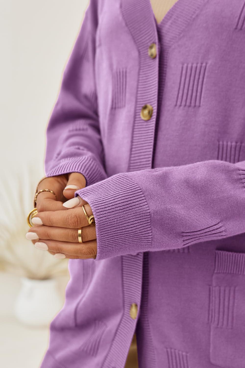 imageArachampCloz Womens Lightweight Cardigan Sweater Fashion Long Sleeve Summer Casual Outfits with Pocket Cozy CloudsGrey Purple
