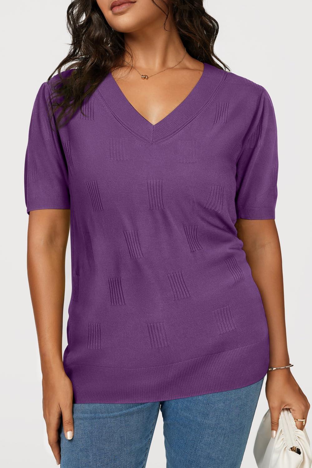 Arach&Cloz Women's Lightweight Fall Sweater Tops Casual Short Sleeve Blouses Shirts(Az-purple)