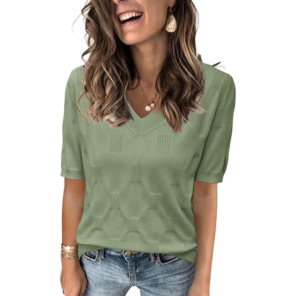 imageArachampampCloz Womens Lightweight Fall Sweater Tops Casual Short Sleeve Blouses ShirtsGreen 03
