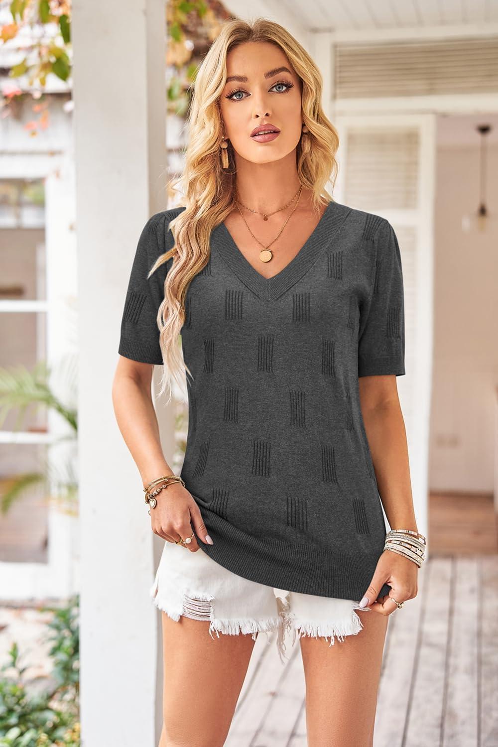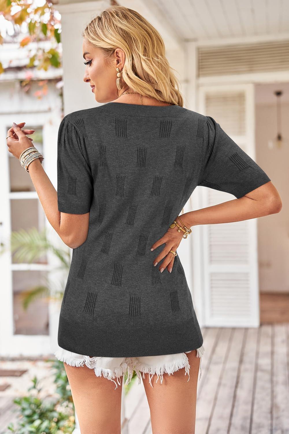 Arach&Cloz Women’s Lightweight Fall Sweater Tops Casual Short Sleeve Blouses Shirts(Heather Grey)