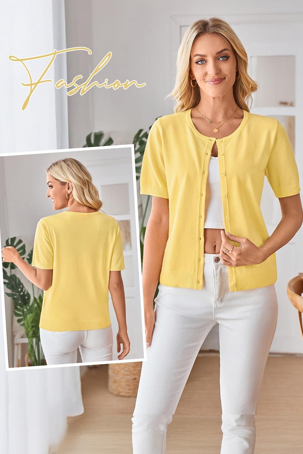 Arach&Cloz Women’s Lightweight Short Sleeve Business Casual Cropped Cardigan Tops(Yellow)