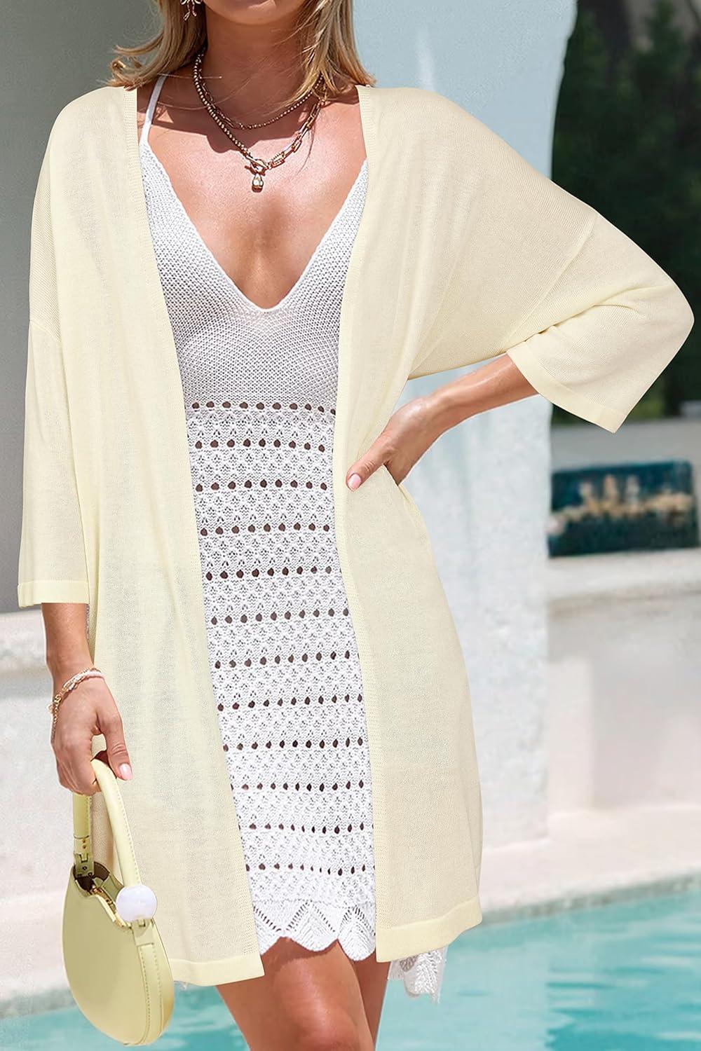 Arach&Cloz Women’s Lightweight Summer Beach Kimonos Cardigan(Cream White)