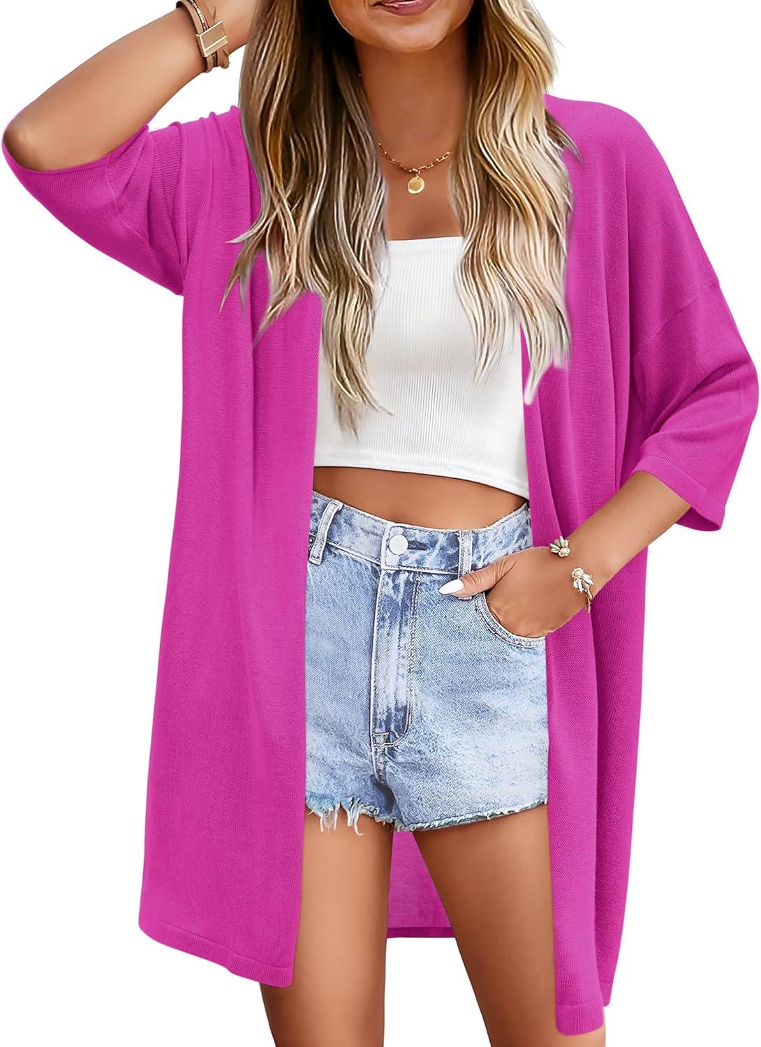 Arach&Cloz Women’s Lightweight Summer Beach Kimonos Cardigan(Hot Pink)