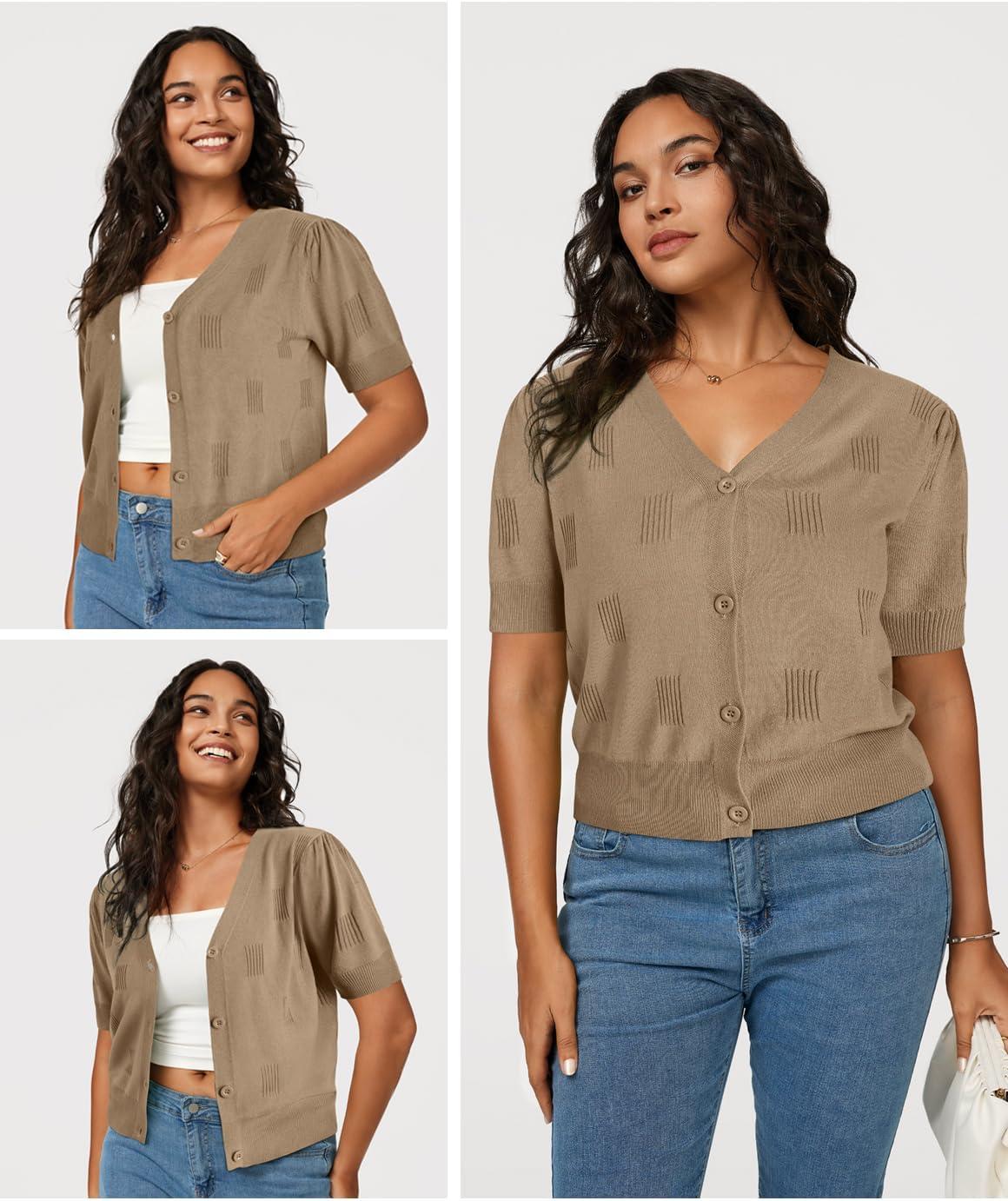 Arach&Cloz Women’s Lightweight Summer Business Casual Cropped Short Sleeve Cardigan(Camel)