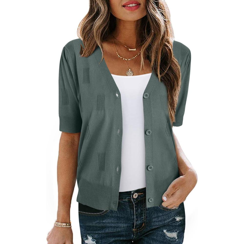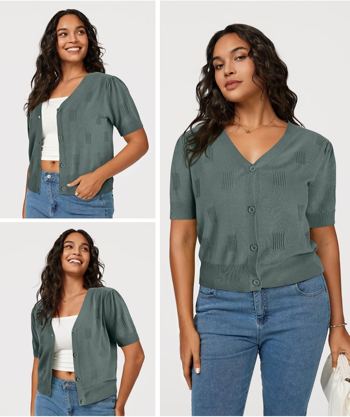 Arach&Cloz Women’s Lightweight Summer Business Casual Cropped Short Sleeve Cardigan(Dusty Emerald)