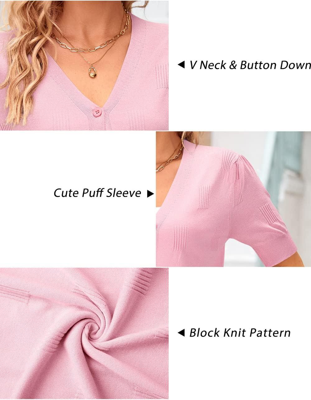 Arach&Cloz Women’s Lightweight Summer Business Casual Cropped Short Sleeve Cardigan(Light Pink)