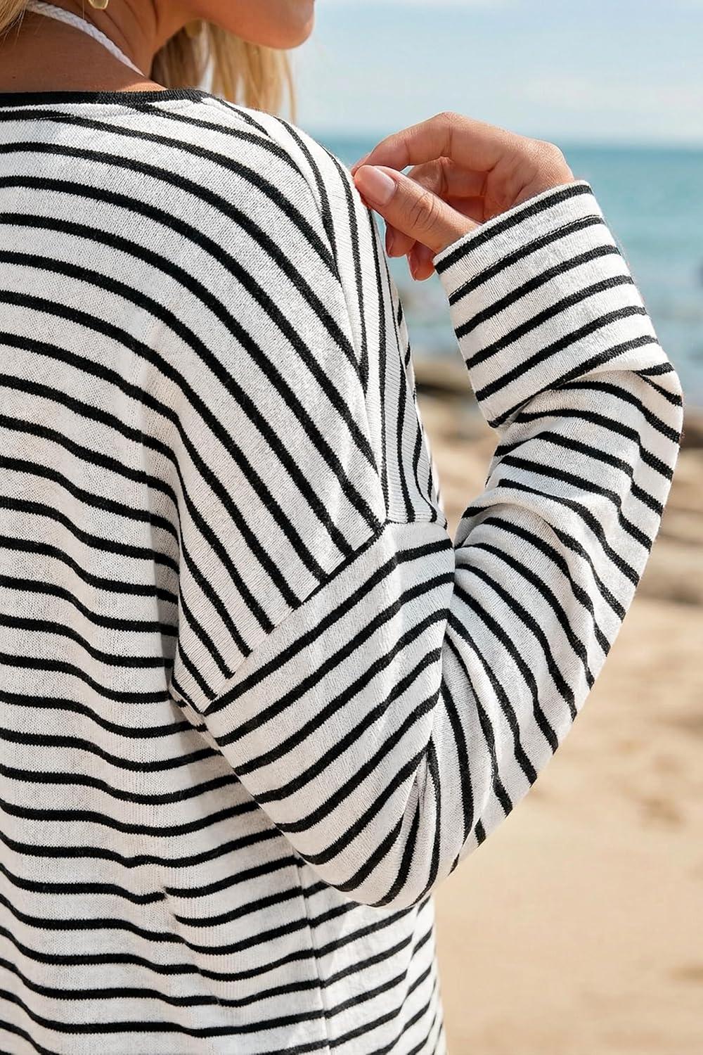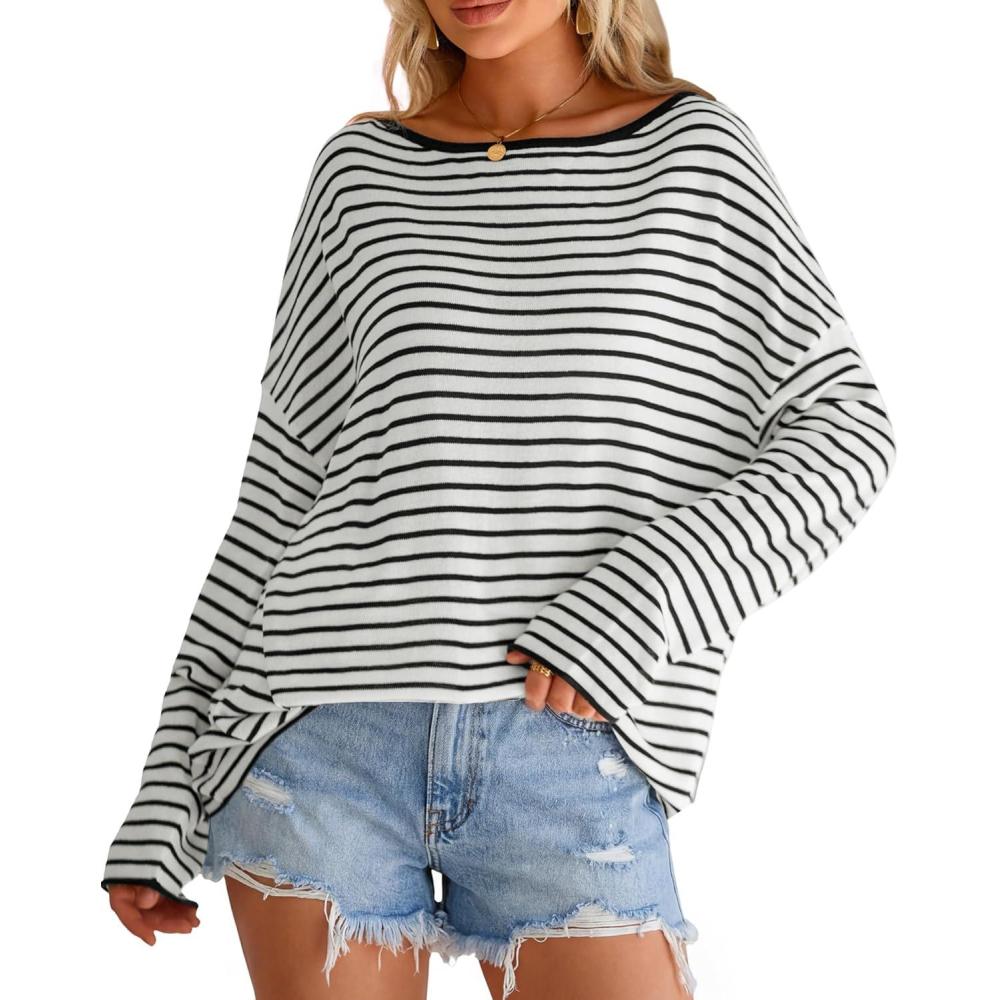 Be the first to review “Arach&Cloz Women’s Linen Blend Beach Vacation Cover Up Summer Casual Oversized Off Shoulder Tops 2026(White Black Stripe)”