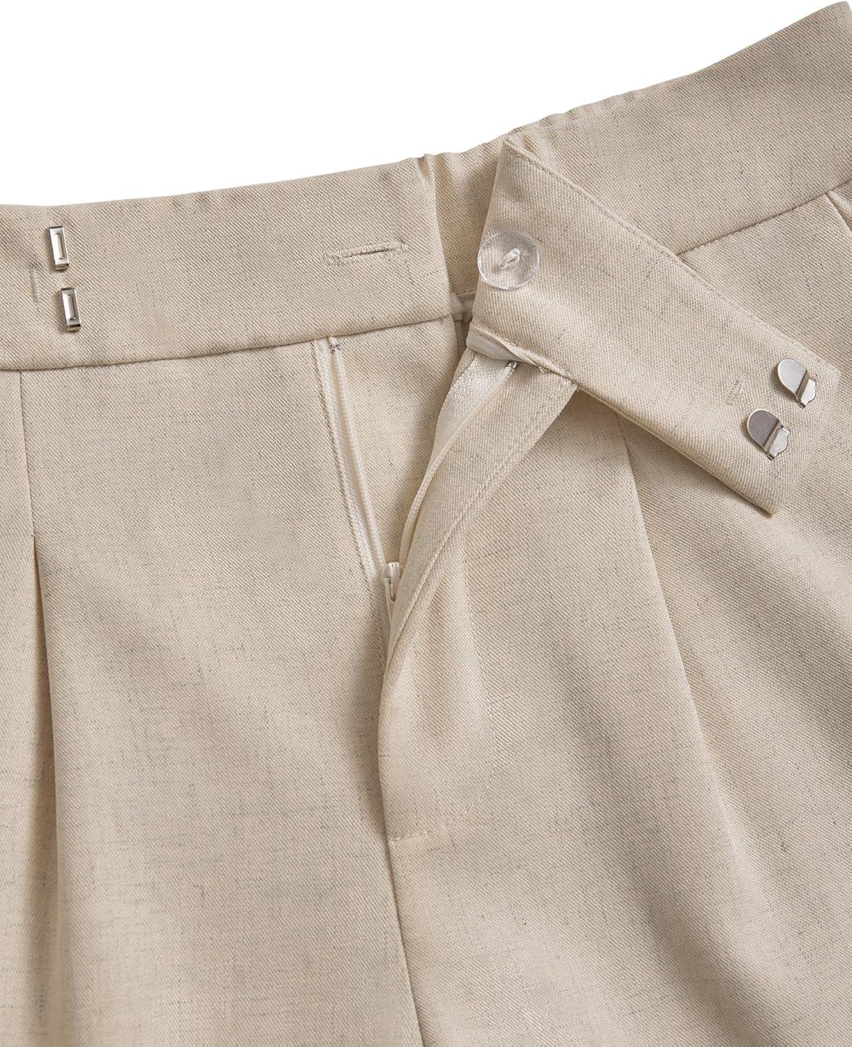 Arach&Cloz Women’s Linen Blend High Waist Business Casual Wide Leg Shorts 2026(Khaki)
