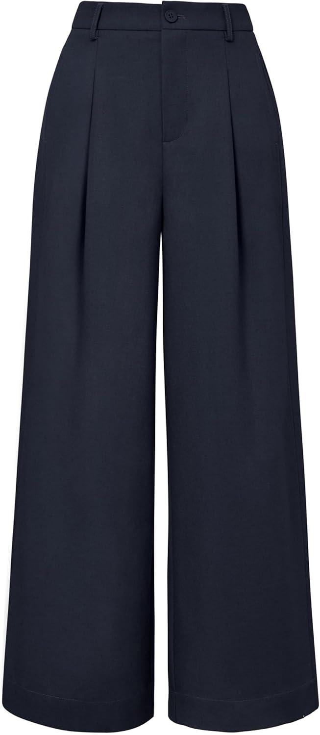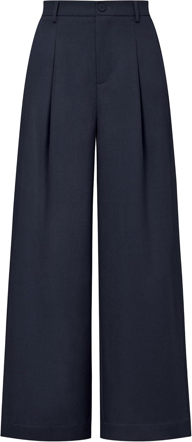 Arach&Cloz Womens Linen Blend Wide Leg All-Season Business Casual Outfits Dress Pants(Navy)