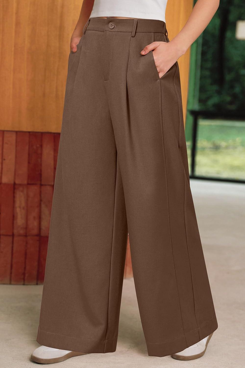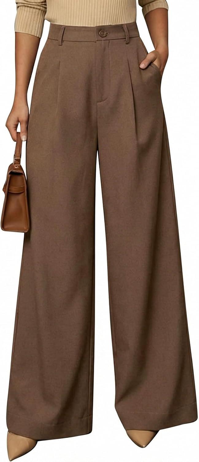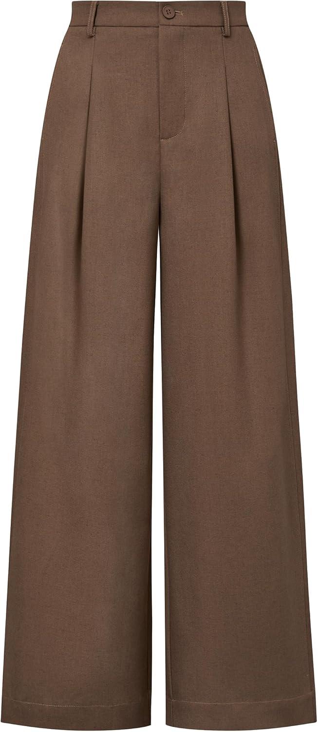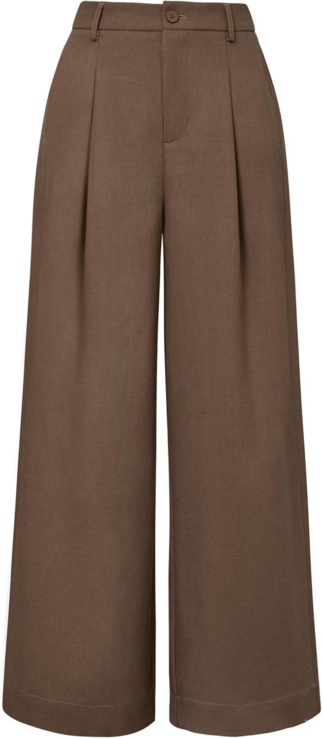 Arach&Cloz Womens Linen Blend Wide Leg Palazzo Pants All-Season Business Casual Outfits Dress Trousers(Coffee)