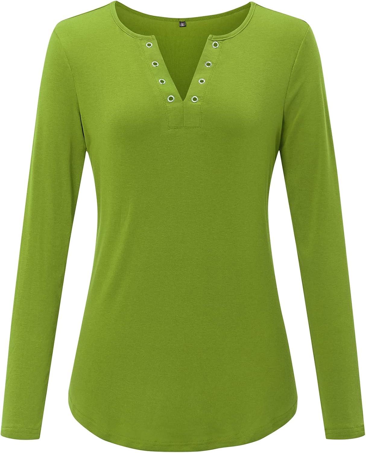 Arach&Cloz Womens Long Sleeve Lace Fall Tops Solid V Neck Button Henley Shirt Casual Tunic Blouse(Green02)