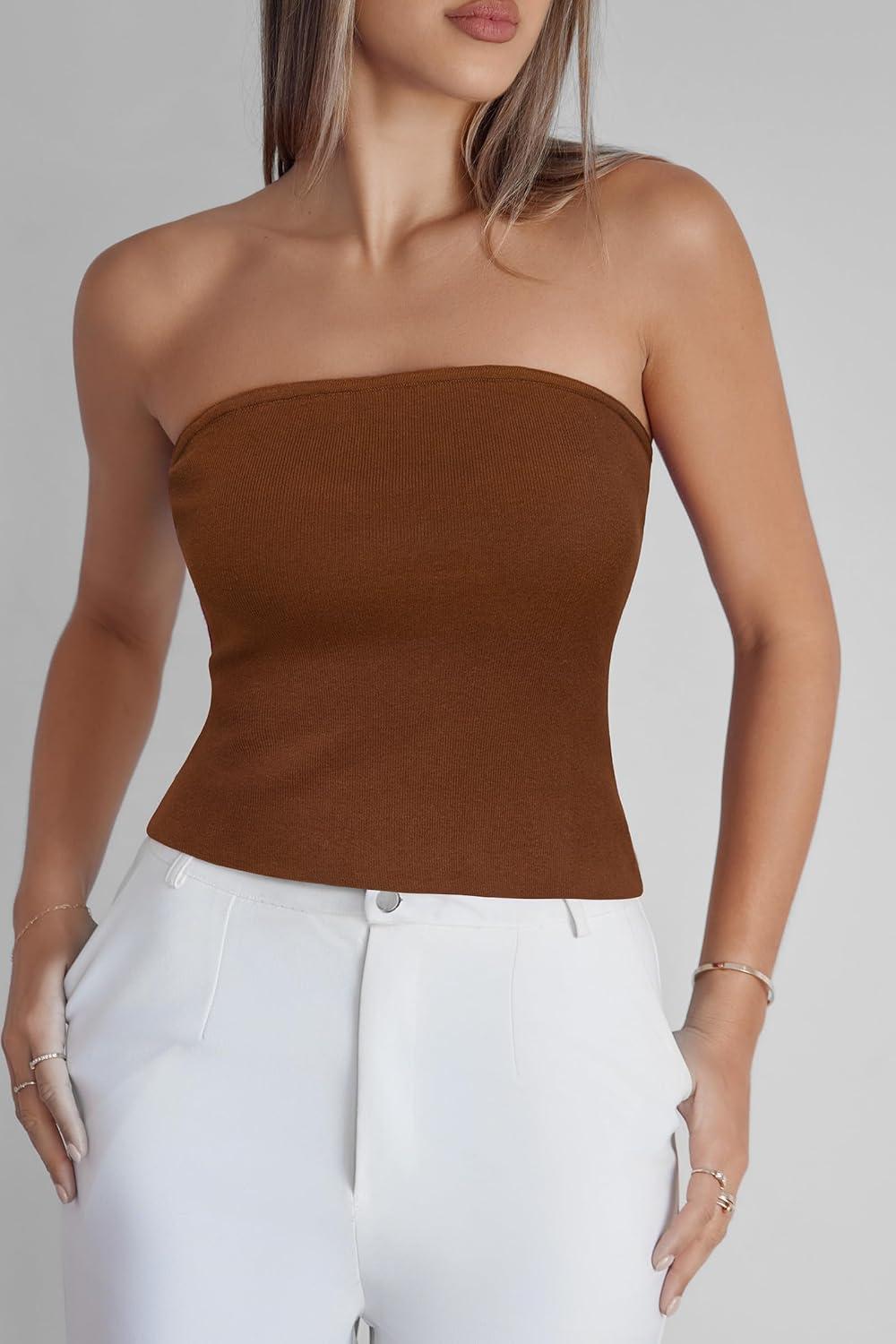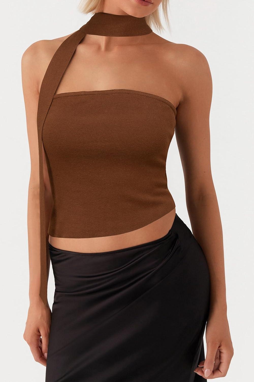 Arach&Cloz Women’s Non See Through 2-in-1 Y2K Non Slip Fall Scarf Tube Top 2025(Caramel)