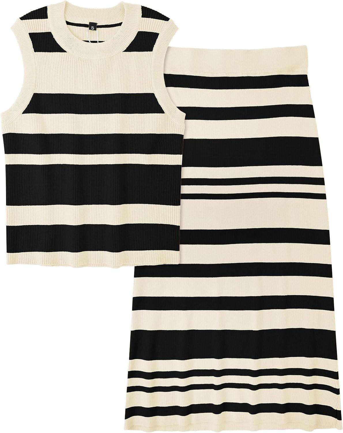 Arach&Cloz Women's Non See Through 2 Piece Sets Tank Top and Midi Skirt Knit Outfits(Apricot-black)