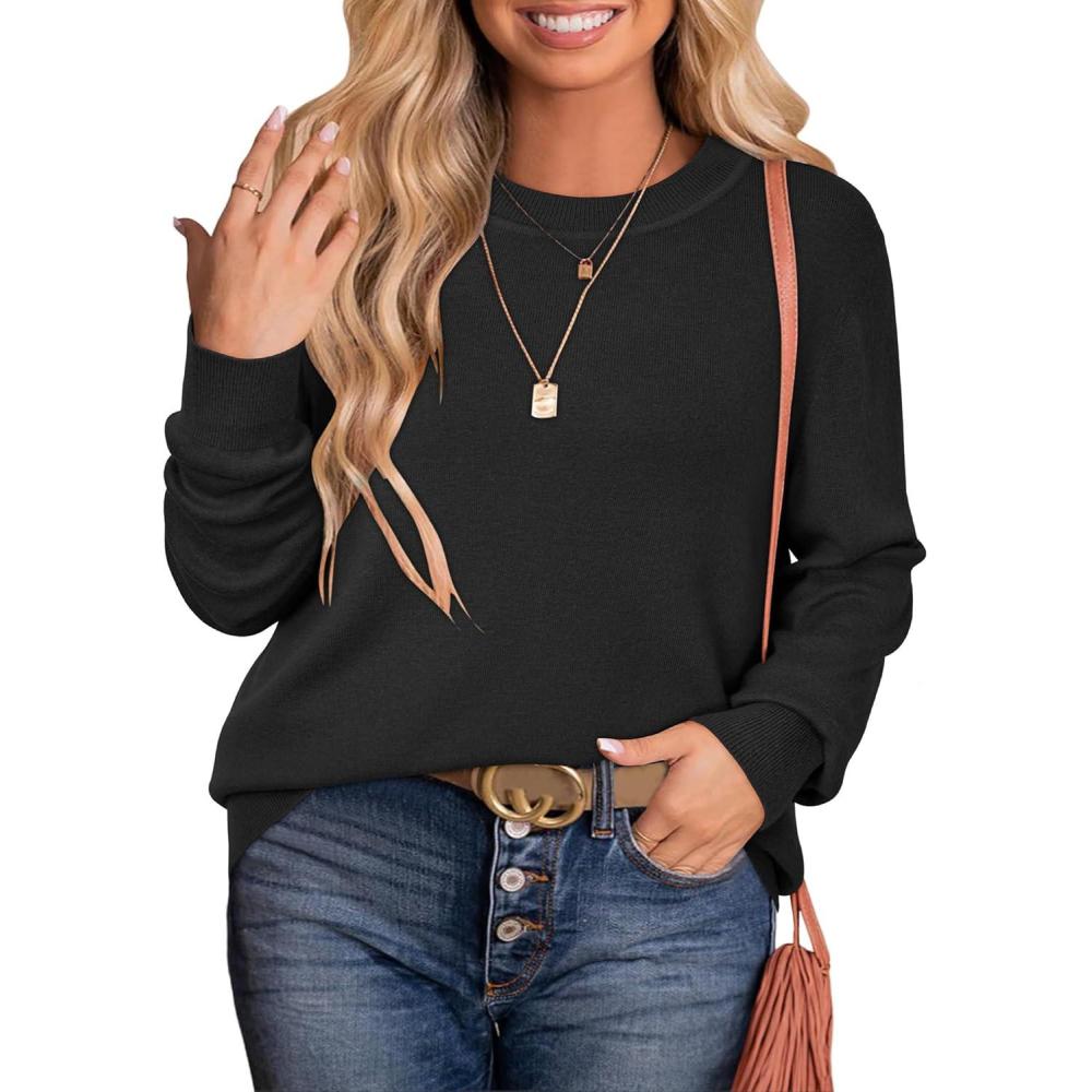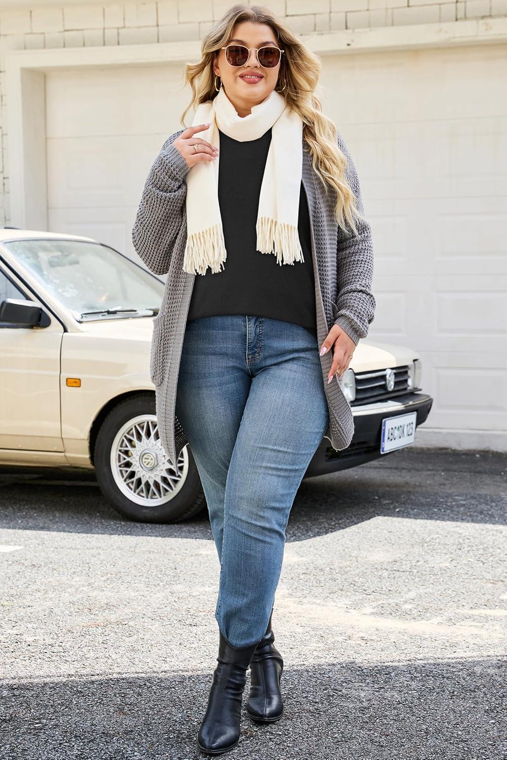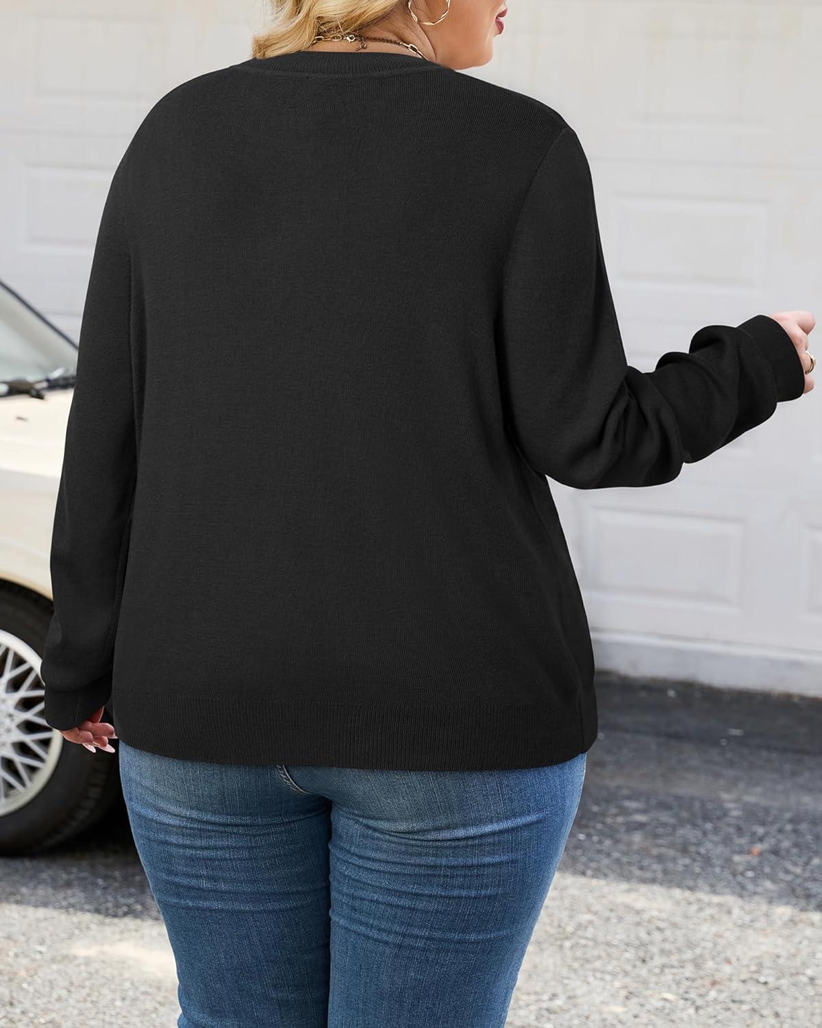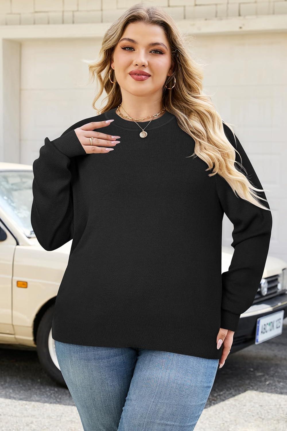 Arach&Cloz Women's Plus Size Wool Blend Sweater Fall Long Sleeve Tops 2025(Black)