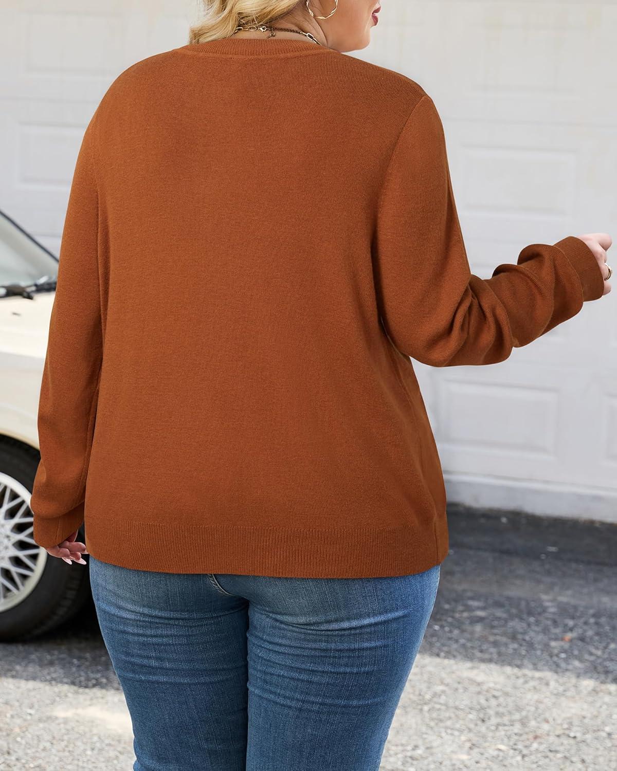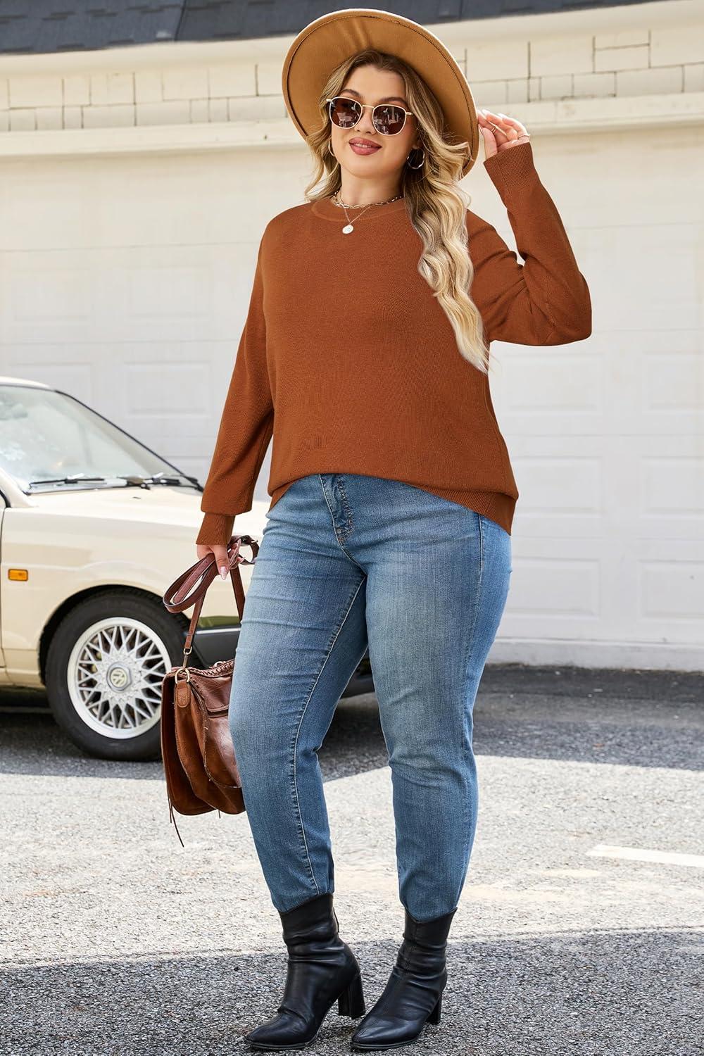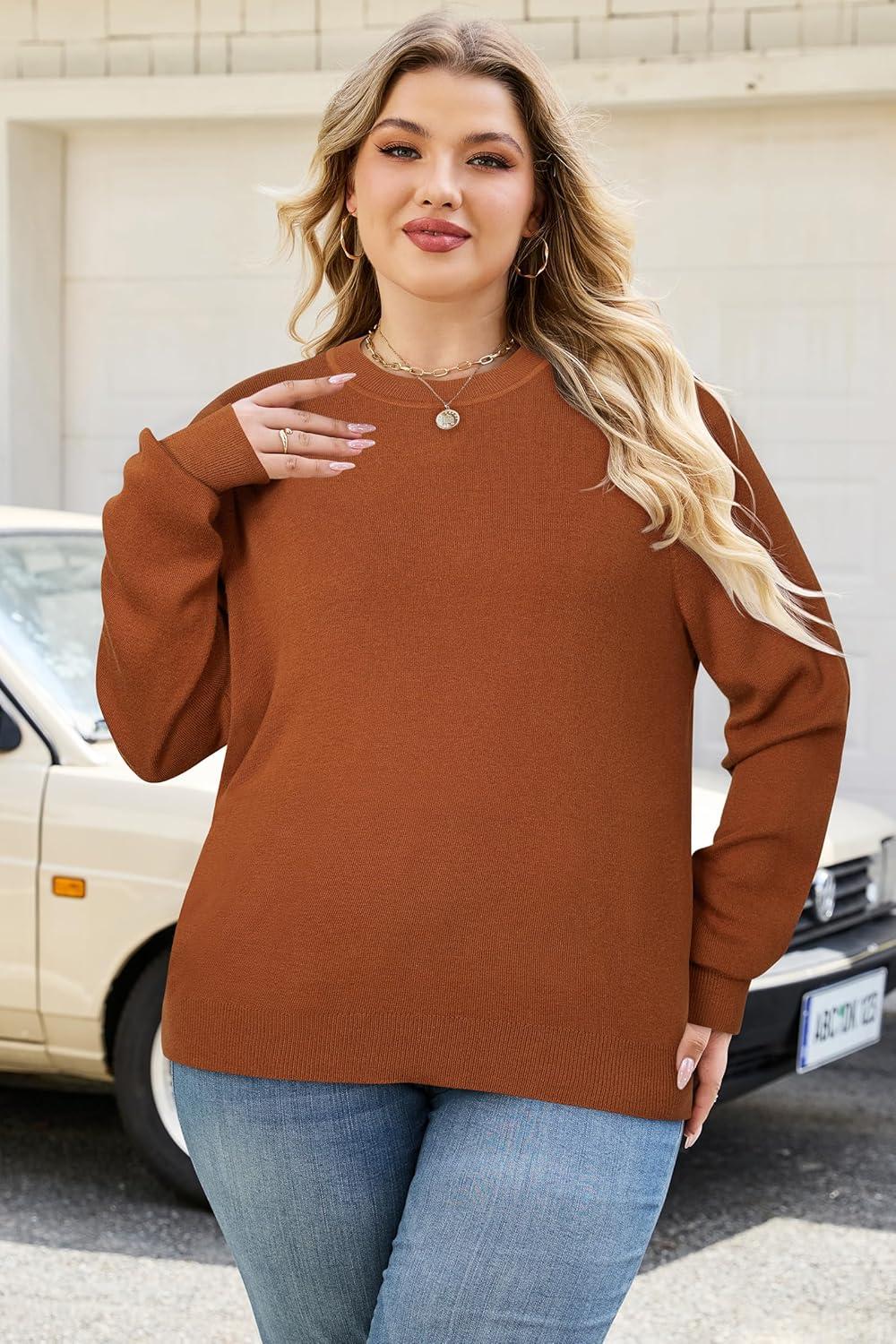 Arach&Cloz Women’s Plus Size Wool Blend Sweater Fall Long Sleeve Tops 2025(Caramel)
