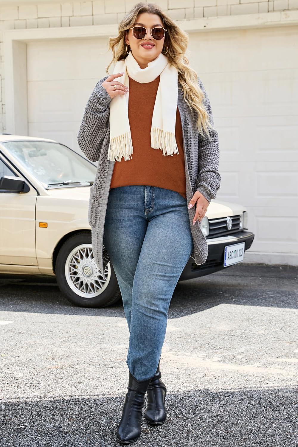 Arach&Cloz Women's Plus Size Wool Blend Sweater Fall Long Sleeve Tops 2025(Caramel)
