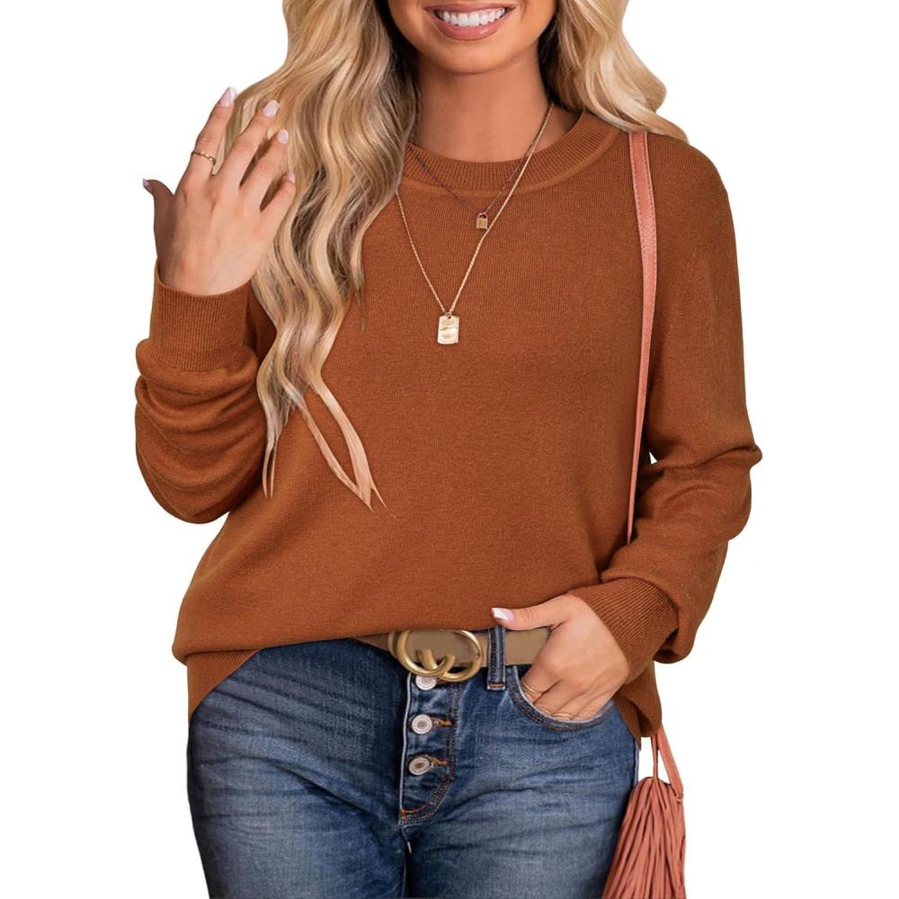 imageArachampCloz Womens Plus Size Wool Blend Sweater Fall Long Sleeve Tops 2025Caramel
