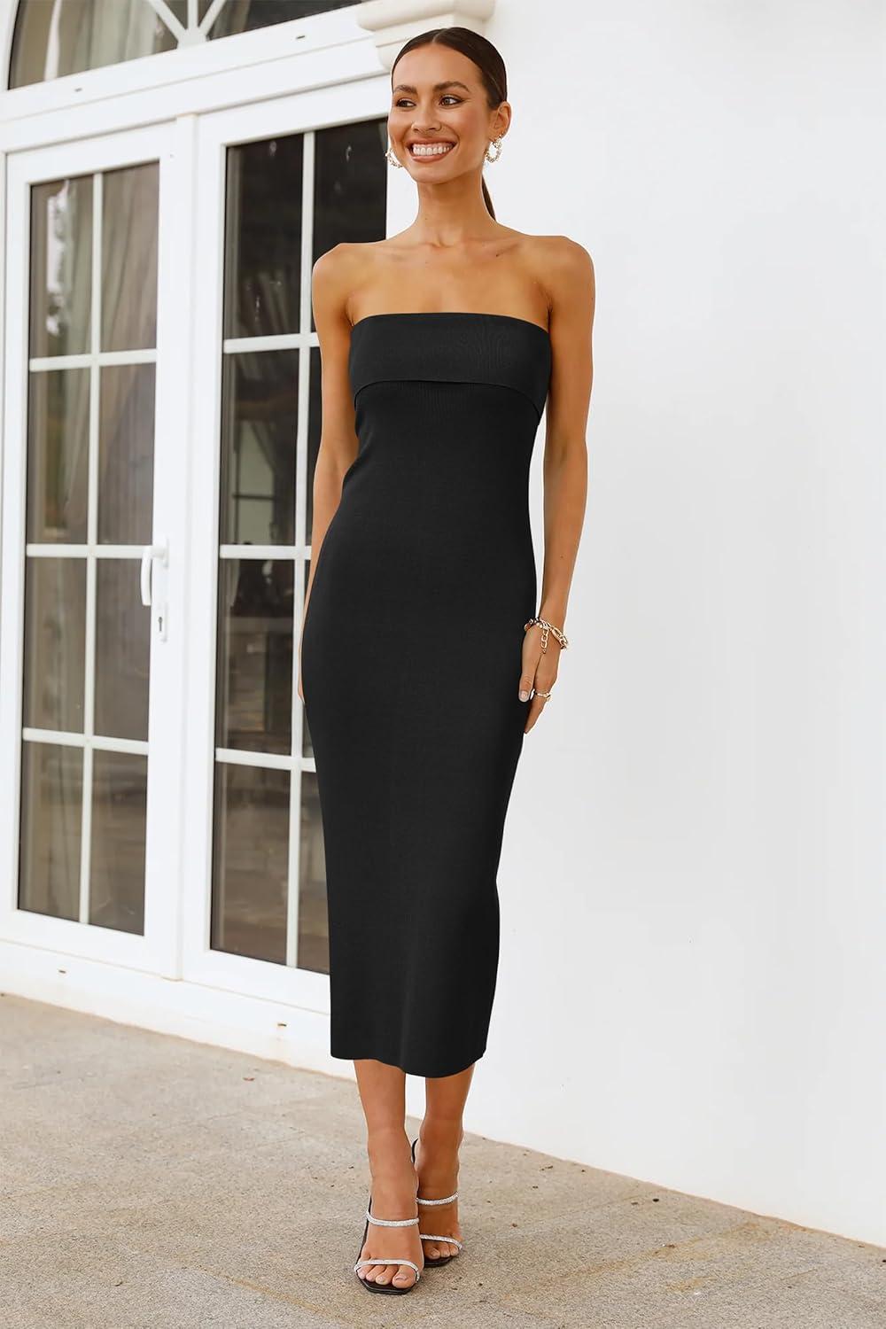 Arach&Cloz Women’s Silk Blend Fold Over Elegant Classy Wedding Guest Dress 2025(Black)