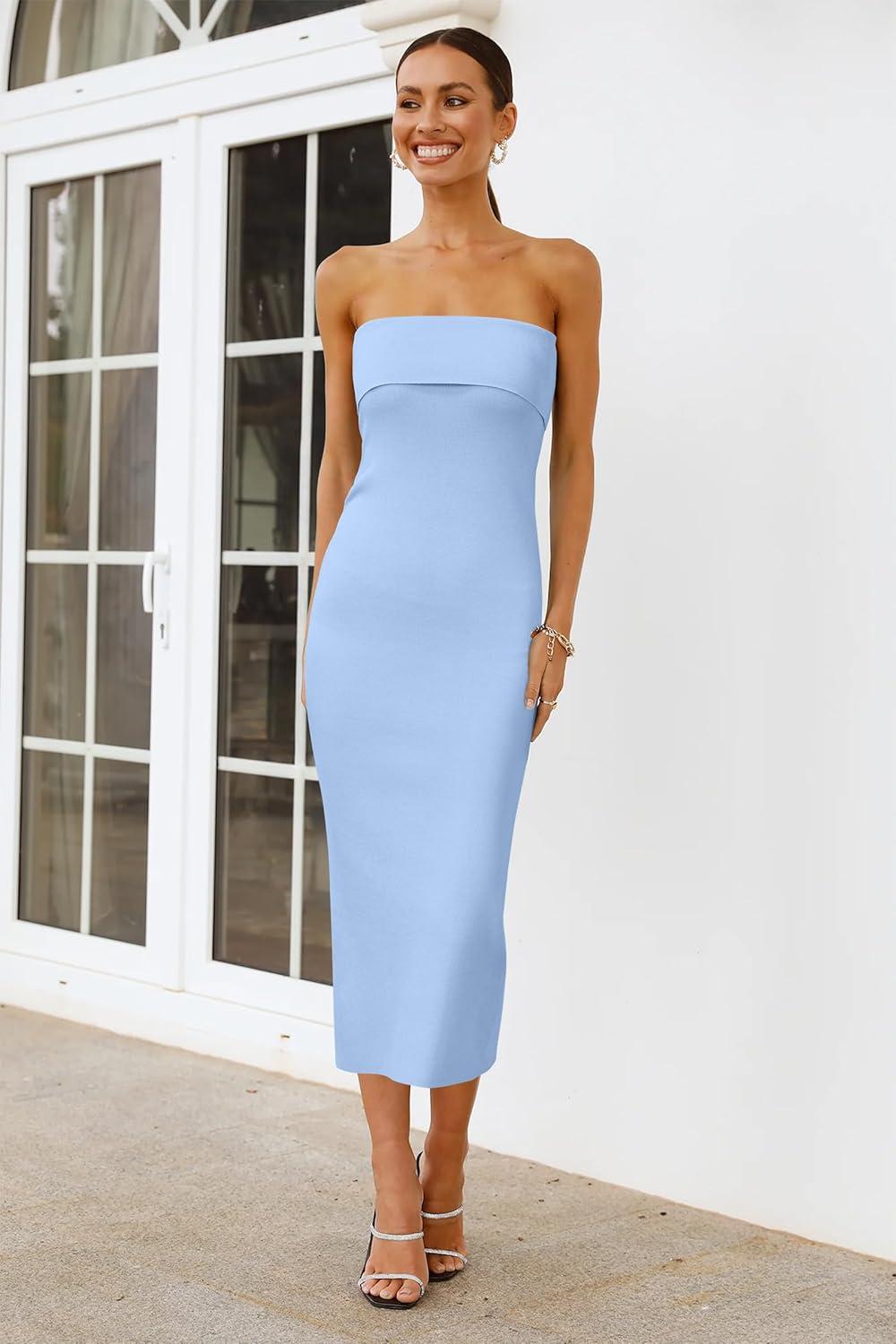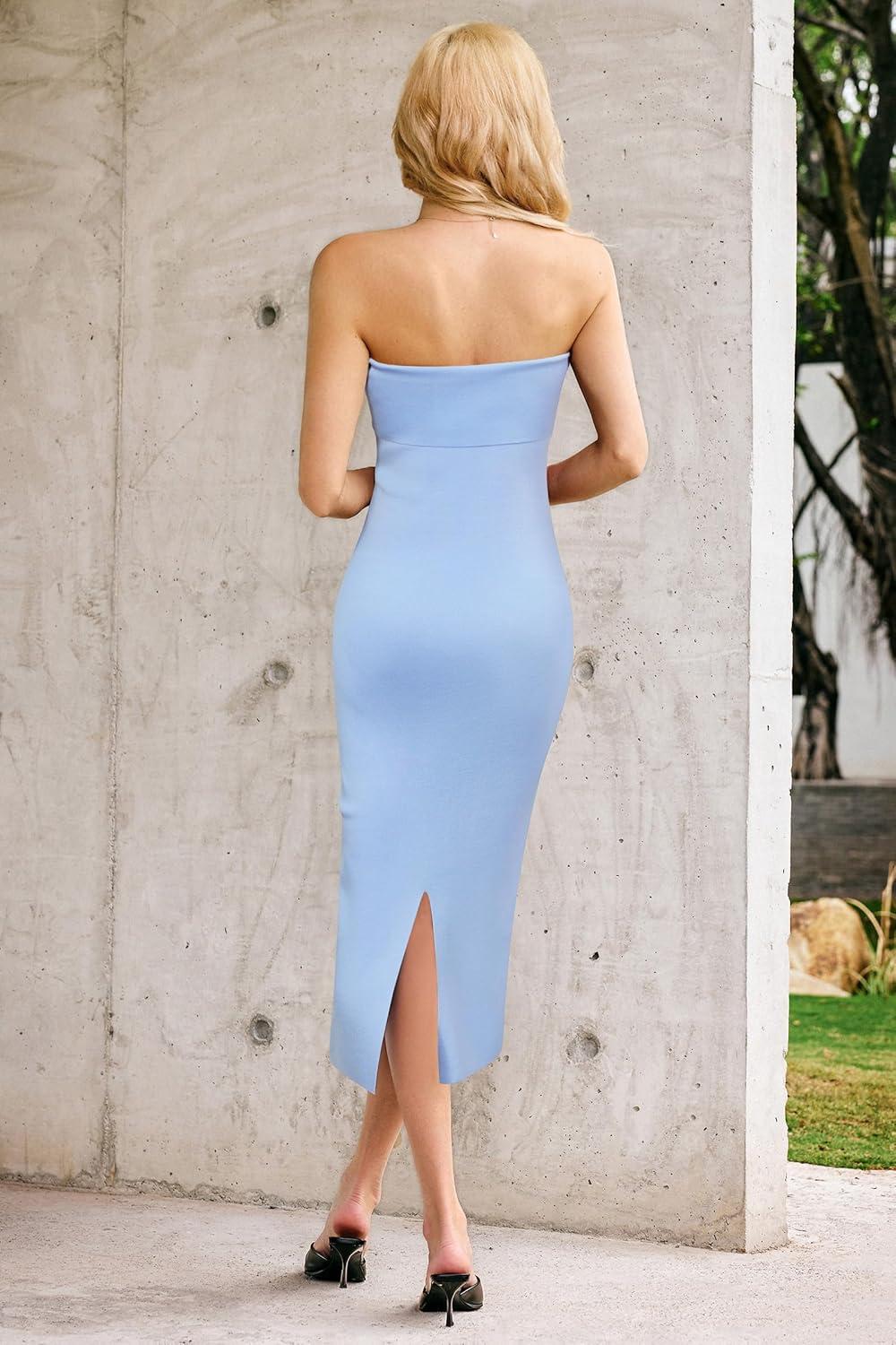 Arach&Cloz Women’s Silk Blend Fold Over Elegant Classy Wedding Guest Dress 2025(Dusty Blue)