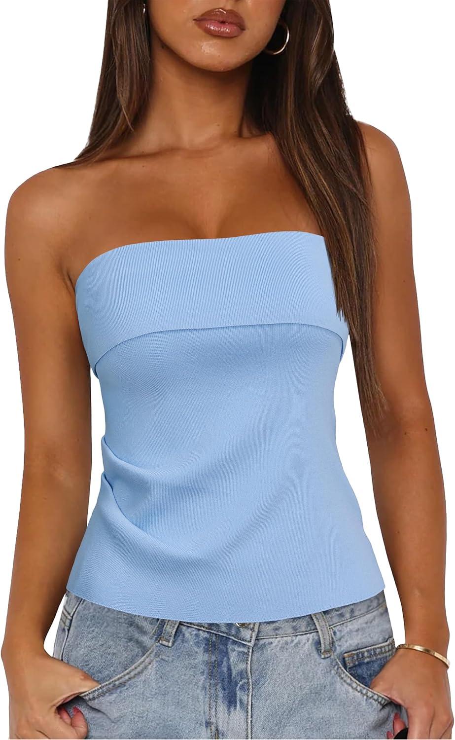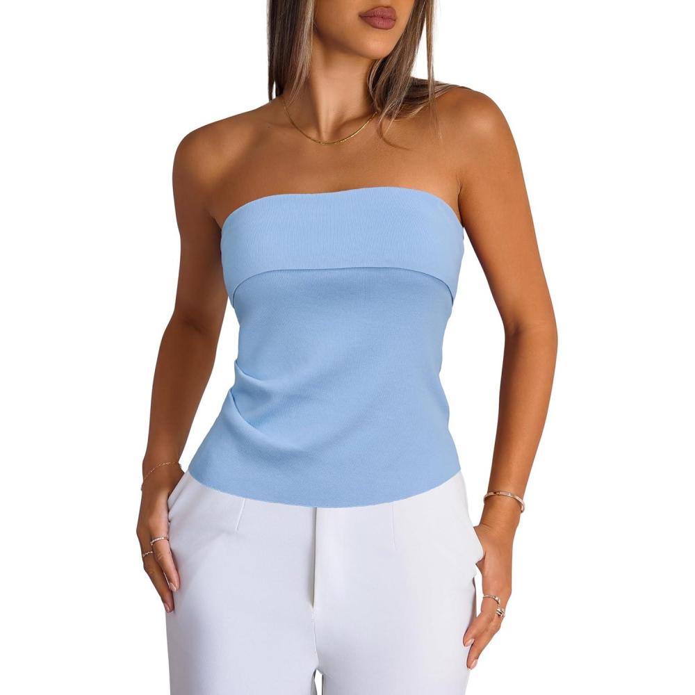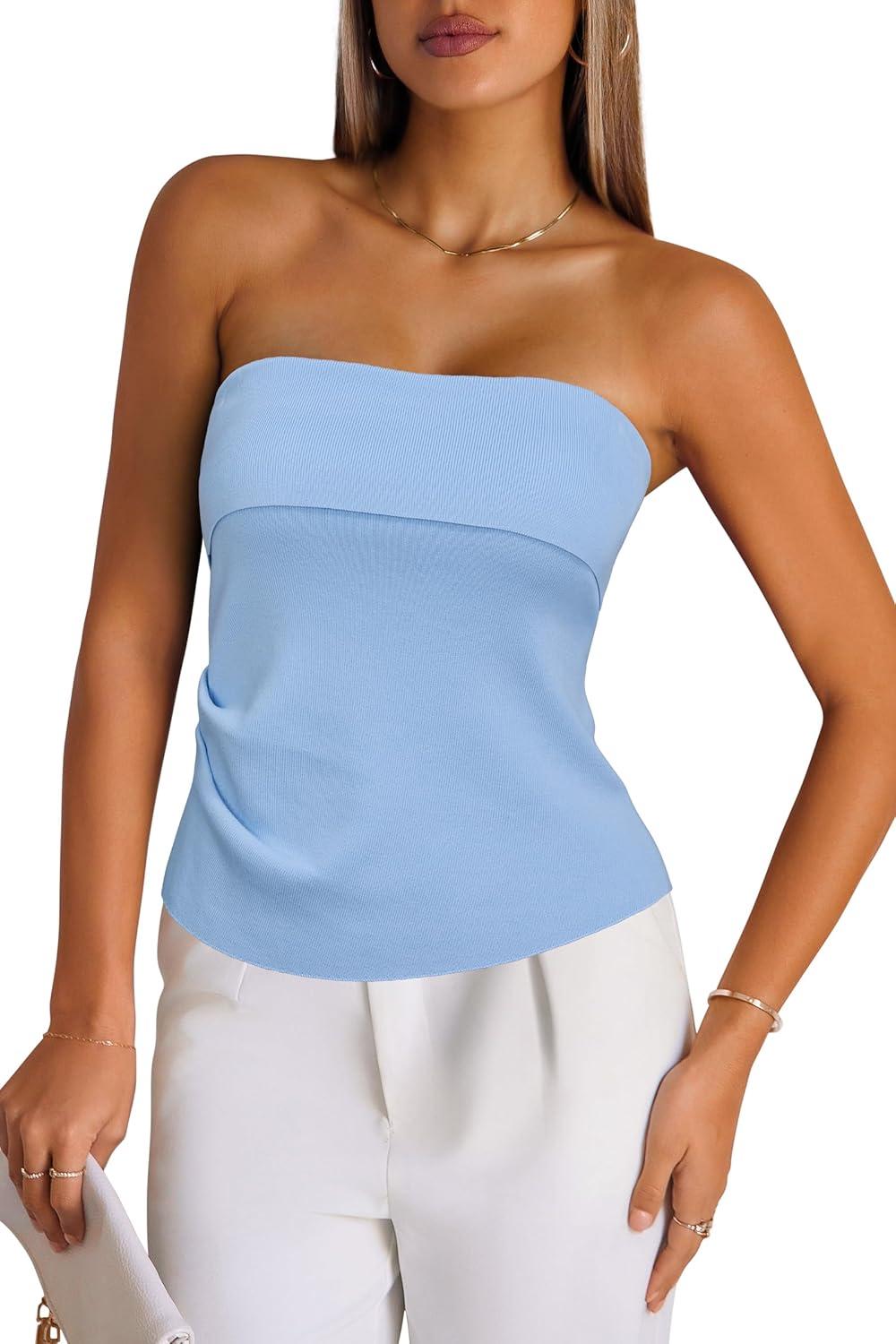 Arach&Cloz Women’s Silk Blend Non See Through Non Slip Fall Fashion Tube Top 2025(Blue)