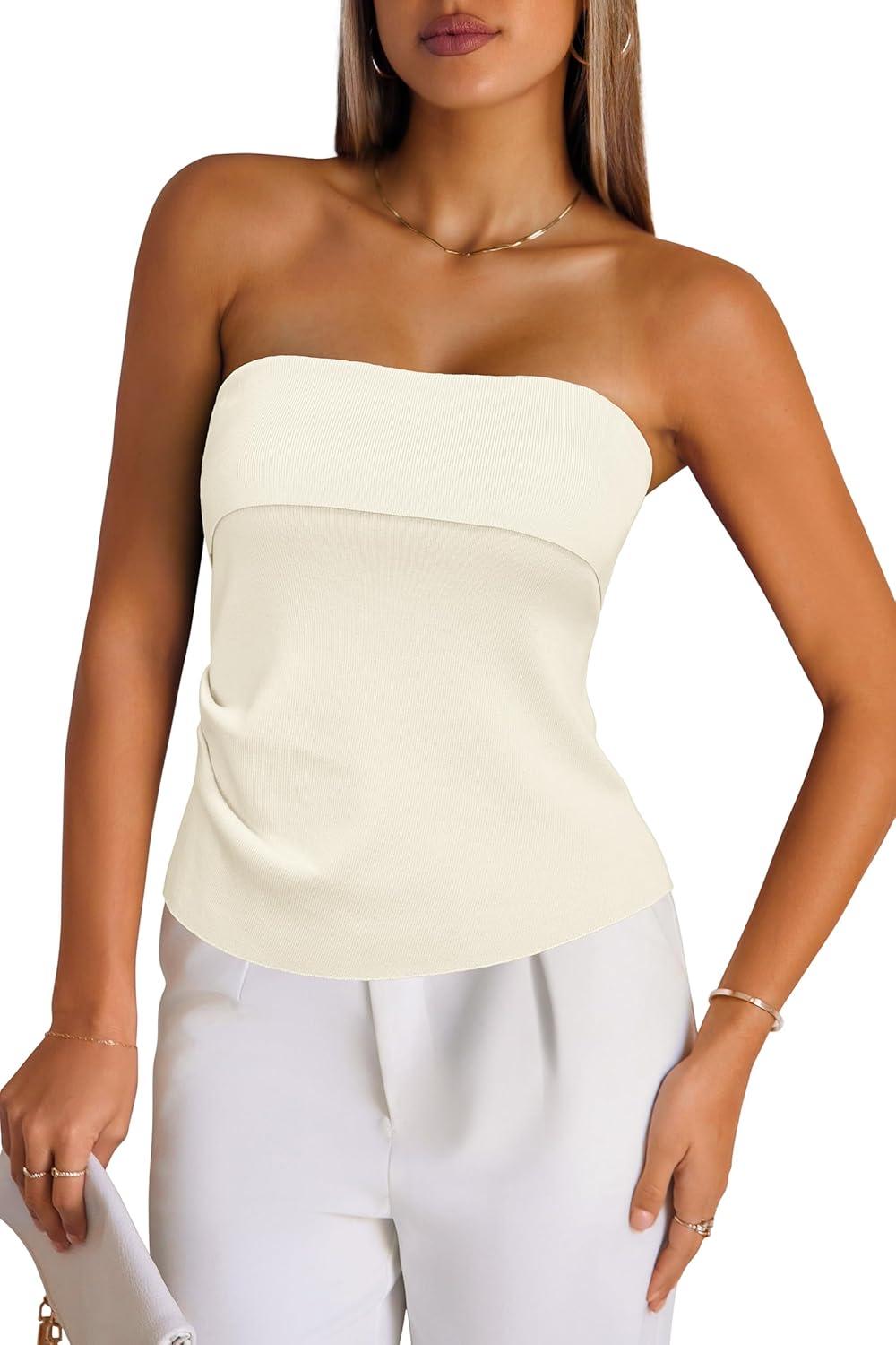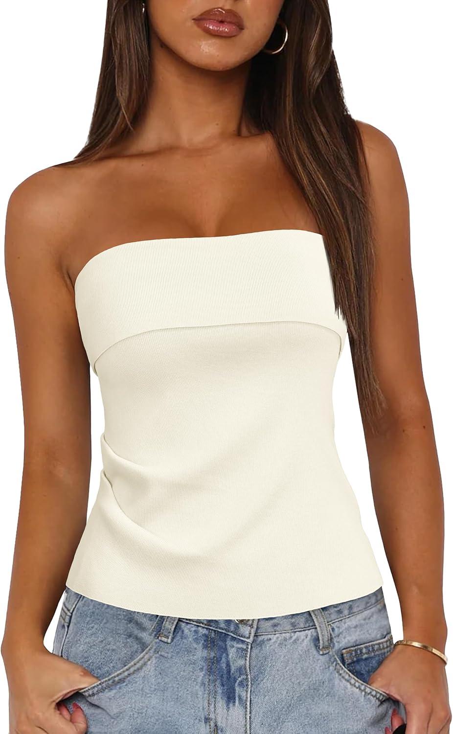 Arach&Cloz Women's Silk Blend Non See Through Non Slip Summer Spring Casual Tube Top 2026(White)