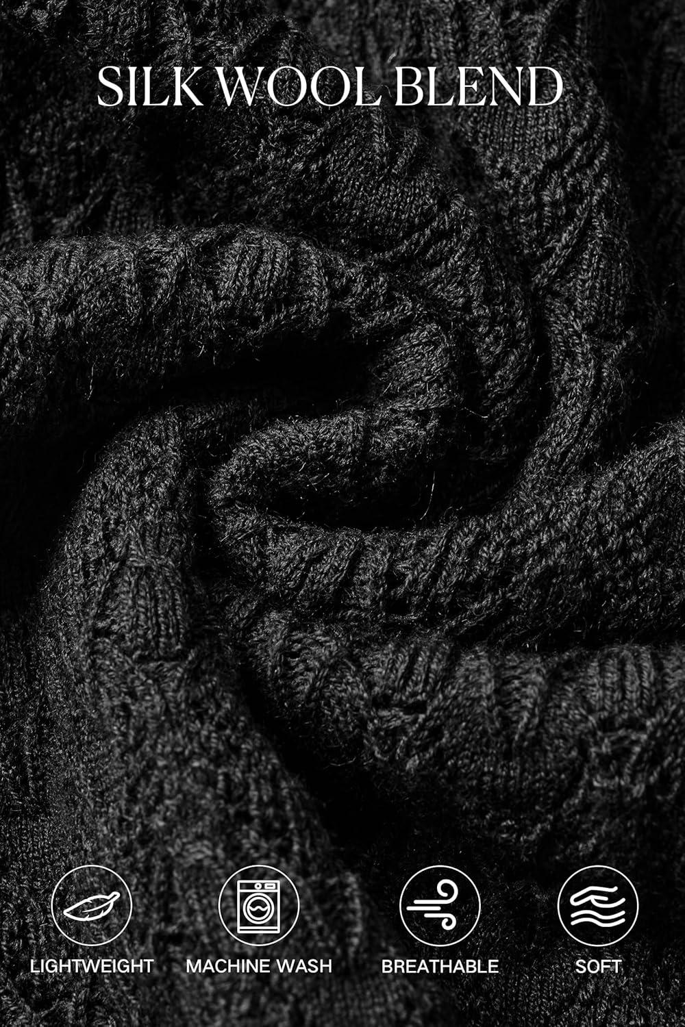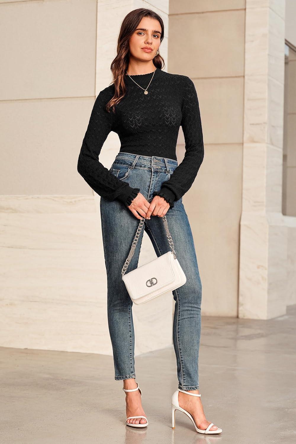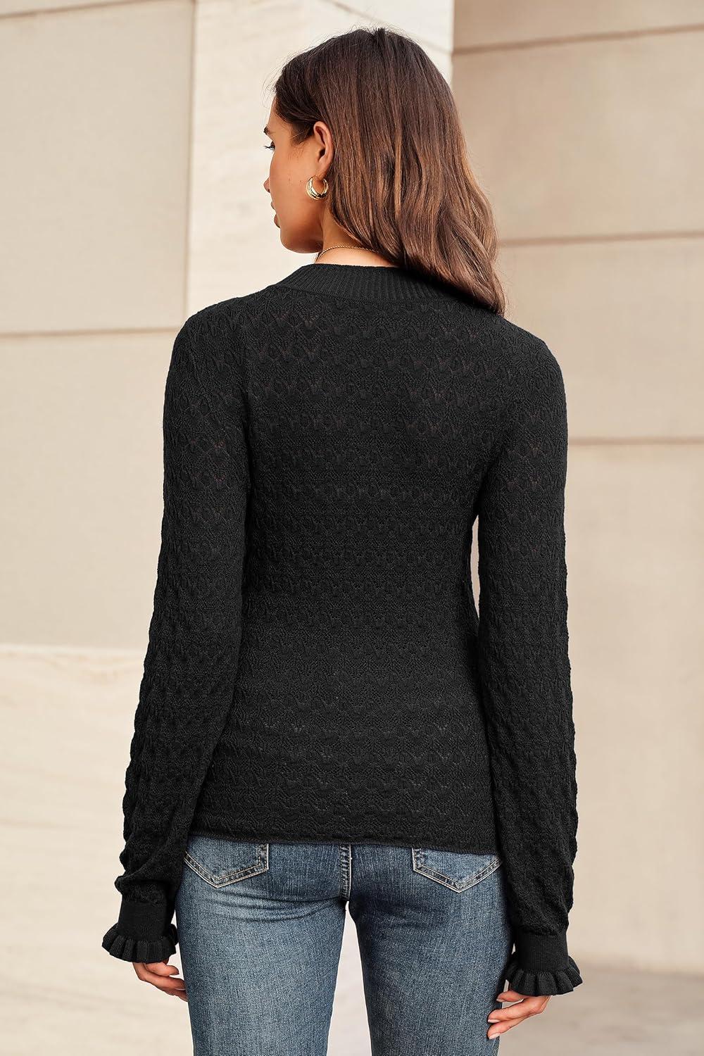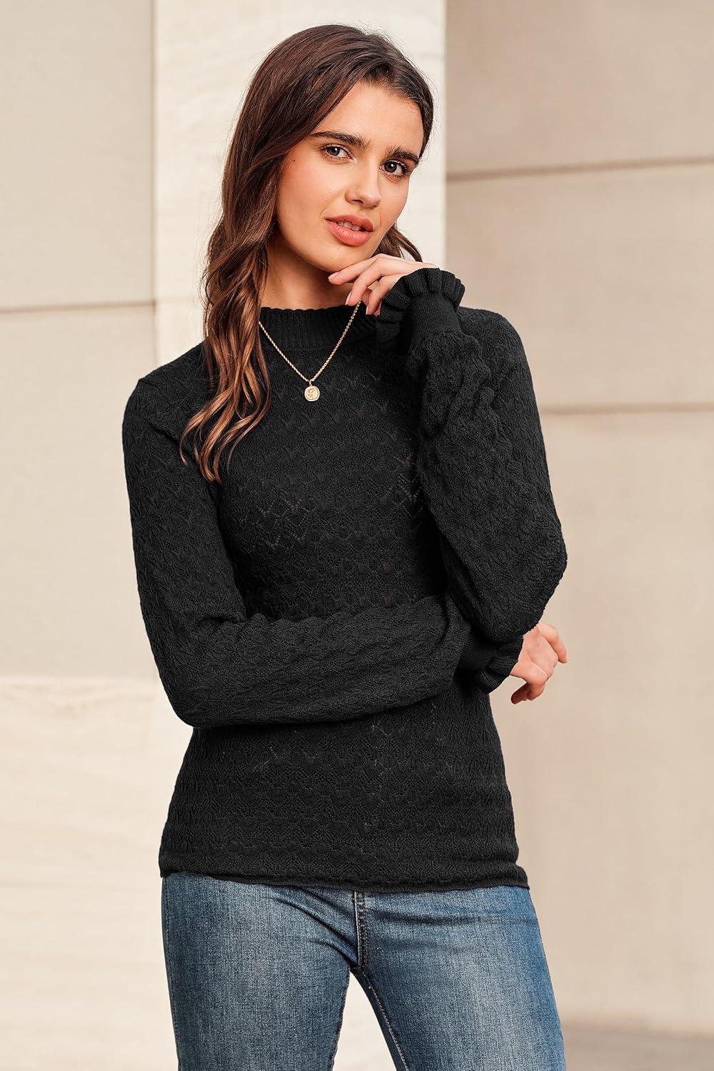 Arach&Cloz Womens Silk Wool Blend Lace Mock Neck Slim Fitted Sweater Trendy 2025(Black)