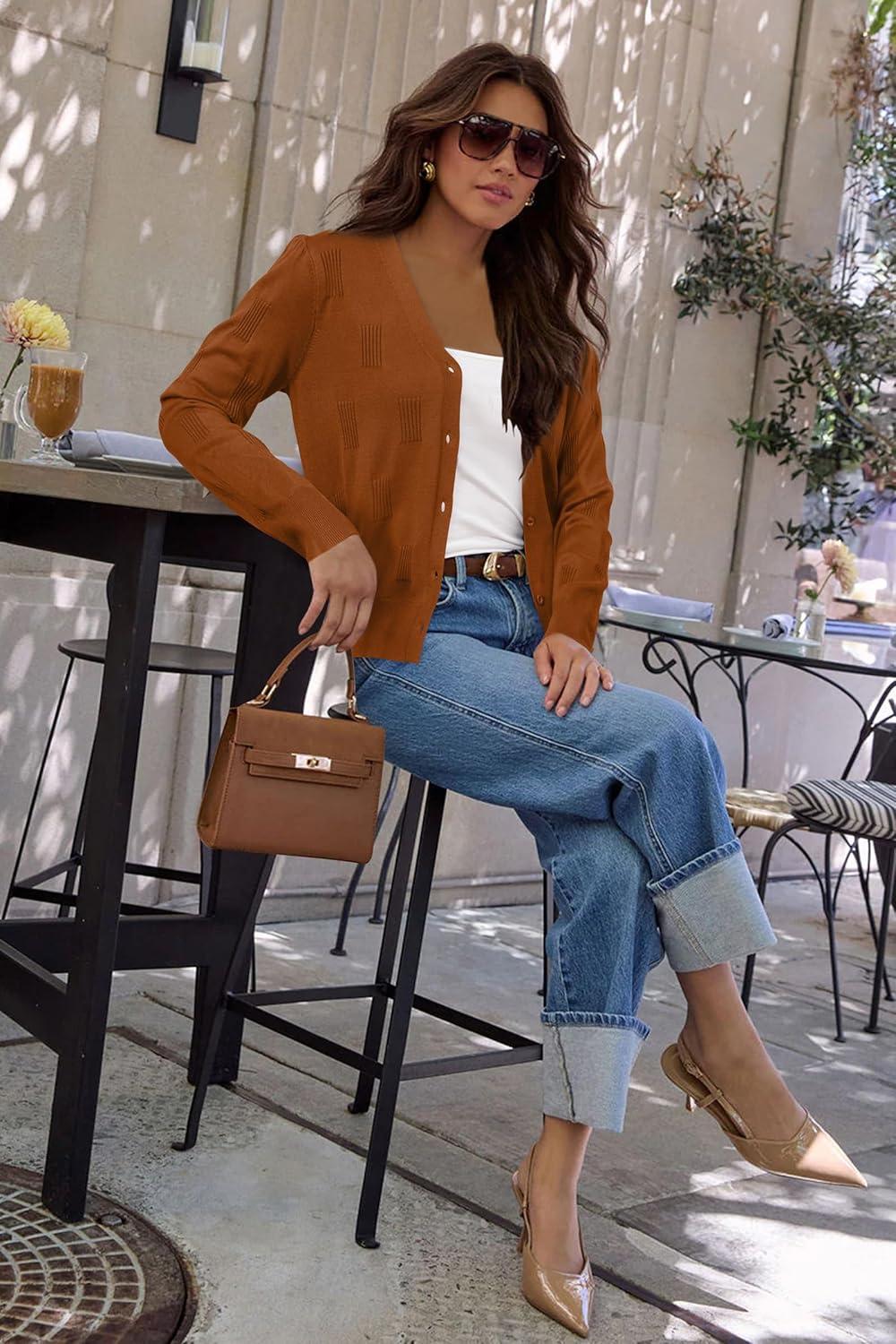 Arach&Cloz Women’s Soft Cropped Cardigan Casual Lightweight Shrug Sweater Tops(Caramel)
